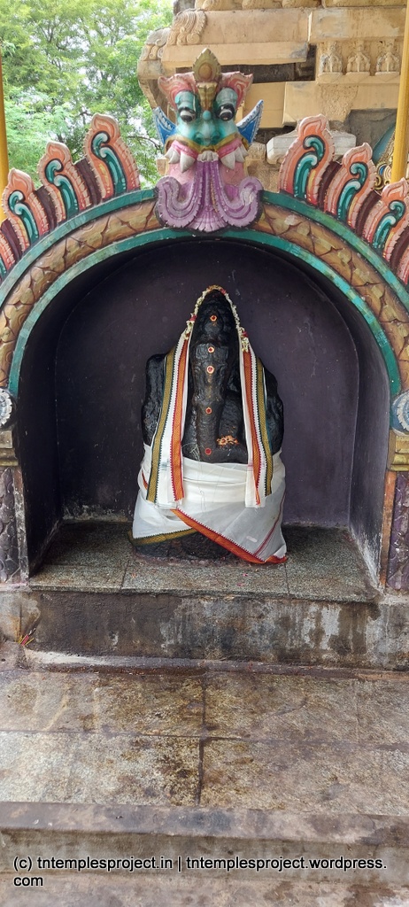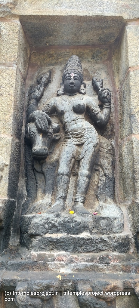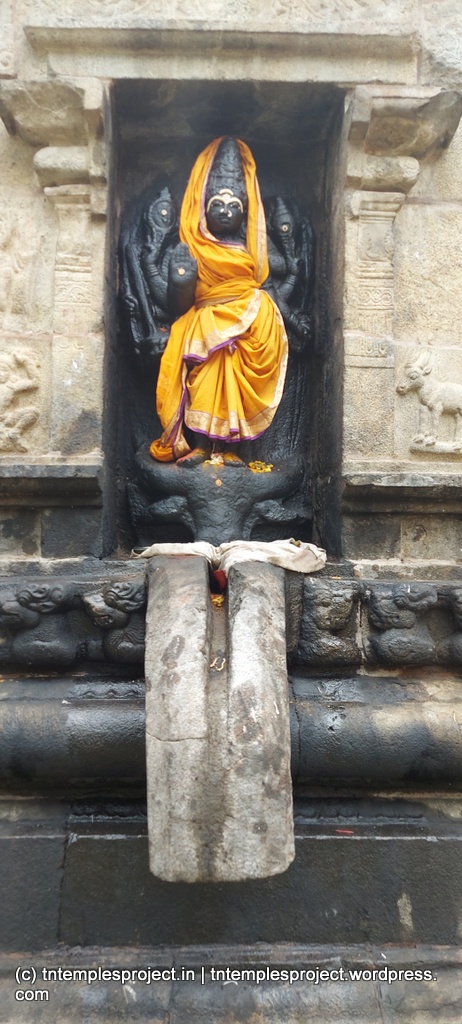 சிவலிங்கம் 3 அடி உயர ஆவுடை மீது நிறுவப்பட்ட 2 அடி உயர பனம் ஆகும். அம்மன் சன்னதி தெற்கு நோக்கி உள்ளது, ஆனால் இங்கு விக்ரஹம் இல்லை – இது சில தசாப்தங்களுக்கு முன்பு சேதமடைந்தது, அன்றிலிருந்து தஞ்சாவூர் அருங்காட்சியகத்தில் வைக்கப்பட்டுள்ளது. அதற்குப் பதிலாக அரூப வடிவில் அம்மனைக் குறிக்கும் பீடம் உள்ளது.