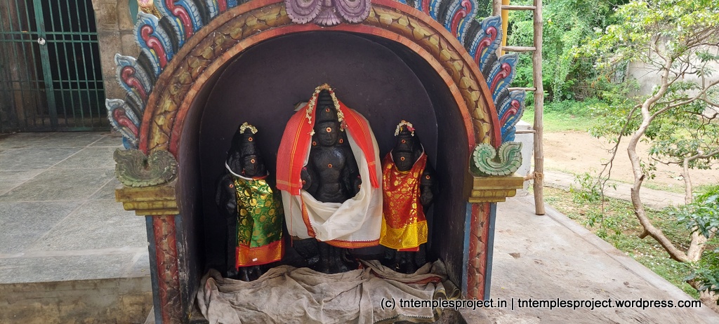 பிரகாரத்தில் சண்டிகேஸ்வரரைத் தவிர, பரிவார தெய்வங்களுக்கான சன்னதிகள் இல்லை; அதற்கு பதிலாக, விநாயகருக்கும், முருகனுக்கும் அவரது துணைவியார் வள்ளி மற்றும் தெய்வானைக்கும் சிறிய சன்னதிகள், மகா மண்டபத்தில் கர்ப்பக்கிரகத்திற்கு வெளியே உள்ள துவாரபாலகர்களுக்கு அடுத்ததாக உள்ளன. தென்மேற்குப் பகுதியில் இரண்டு லிங்கங்கள் அந்தந்த நந்திகளுடன் தரையில் உள்ளன. இவை பழைய லிங்கங்களாகவும் அவற்றின் நந்திகளாகவும் இருந்திருக்கலாம் அல்லது மேற்கில் உள்ள பிரகாரம் சன்னதிகளில் இருந்திருக்கலாம்.
