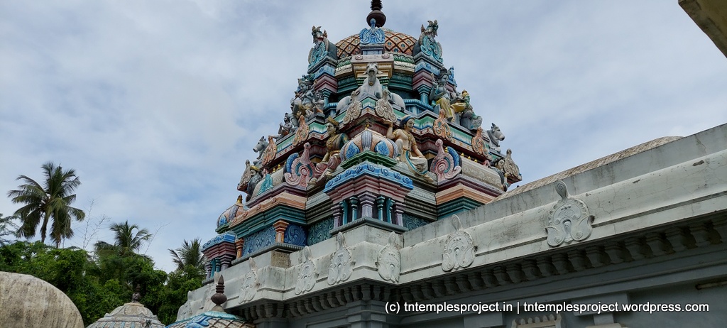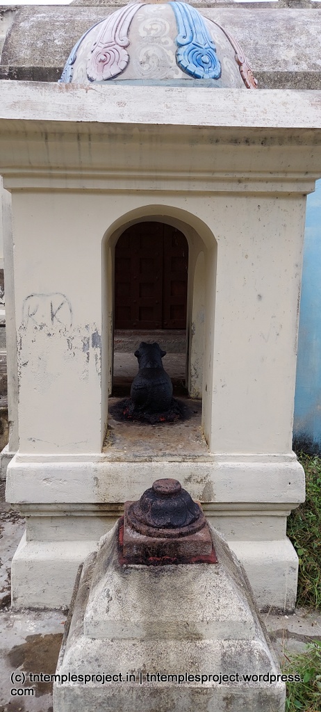 கோயில் கிழக்கு நோக்கியிருந்தாலும், நுழைவு வாயில் தெற்கே உள்ளது. ராஜகோபுரம் இல்லை, ரிஷப வாகனத்தில் சிவன் மற்றும் பார்வதியின் ஸ்டக்கோ உருவத்துடன் கூடிய வரவேற்பு வளைவு மட்டுமே உள்ளது. கிழக்கே பலி பீடமும் நந்தியும் மூலவரை நோக்கியவாறு உள்ளன. கர்பக்ரிஹத்திற்கு வெளியே தனித்தனியாக இரண்டு துவாரபாலகர்கள் அழகாகச் செதுக்கப்பட்டுள்ளனர். அம்மன் ஒரு பொதுவான தெற்கு நோக்கிய சன்னதியைக் கொண்டுள்ளது (தெற்கு வாசலில் இருந்து நுழையும் போது முதலில் பார்ப்பது இதுதான்). மண்டபத்தில் தடுப்புக்கள் உள்ளன அதனால் உள்ளே அணுகல் குருக்கள் மற்றும் அர்ச்சனை செய்பவர்களுக்கு முடியும்.