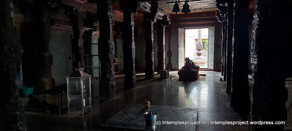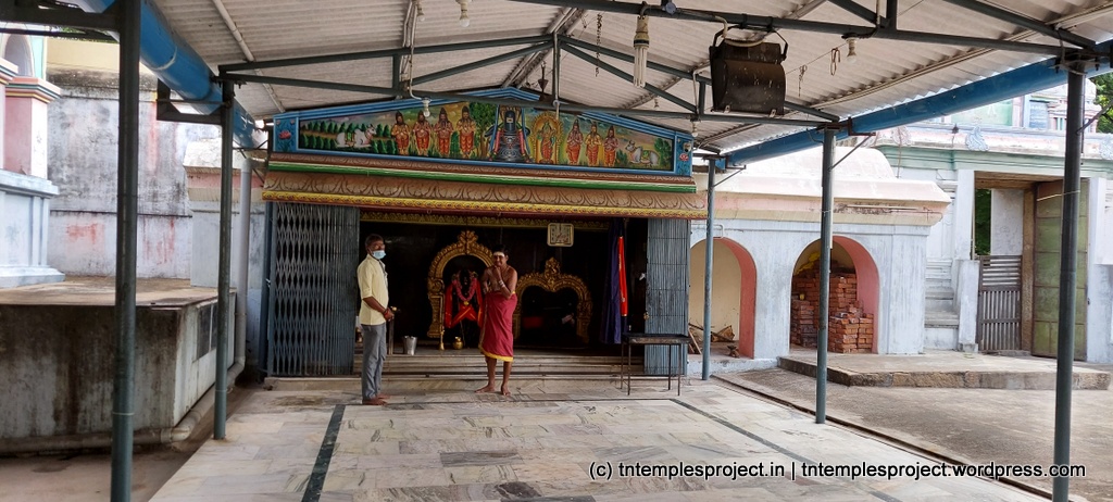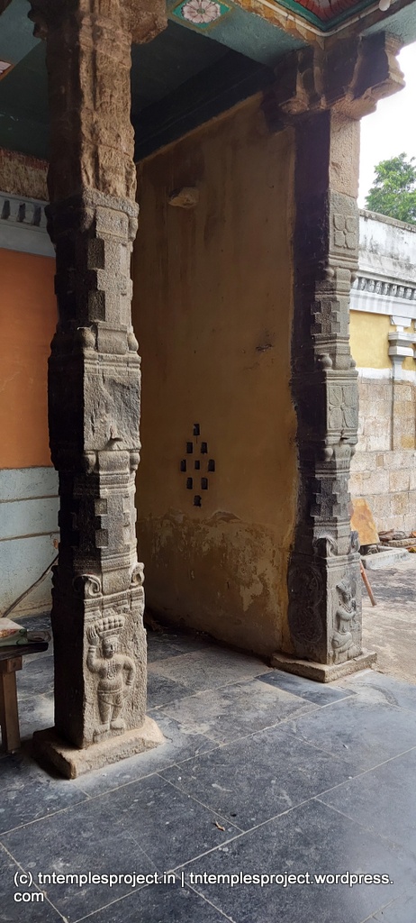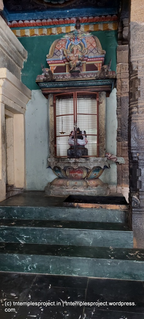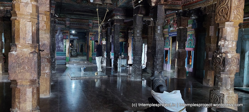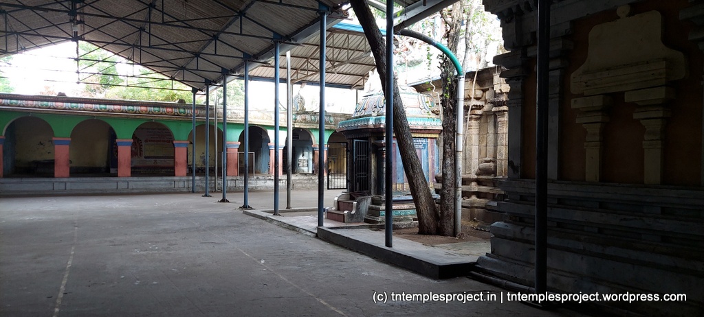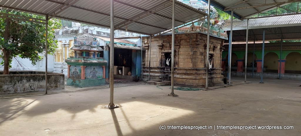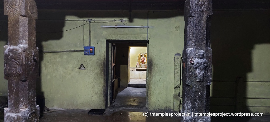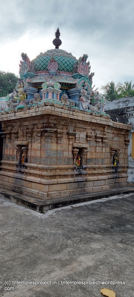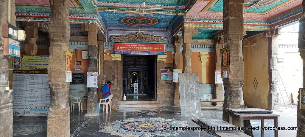 கோயில் கிழக்கு நோக்கியிருந்தாலும், பிரதான நுழைவாயில் தெற்கிலிருந்து உள்ளது, இது நேரடியாக மகா மண்டபத்திற்குள் செல்கிறது. கிழக்கே த்வஜஸ்தம்பம் மற்றும் பலி பீடம் உள்ளது, மேலும் கர்ப்பகிரஹம் கோஷ்டங்களில், வழக்கமான தெய்வங்கள் – விநாயகர், தட்சிணாமூர்த்தி, லிங்கோத்பவர், பிரம்மா மற்றும் துர்க்கை – உள்ளன. விநாயகர், முருகன், கஜலட்சுமி, வாயு லிங்கம், தேவாரம் நால்வர் (அப்பர், சுந்தரர், சம்பந்தர், மாணிக்கவாசகர்), நவக்கிரகம் ஆகிய பிரகாரத்தில் உள்ள சன்னதிகளும் அப்படித்தான். கோயிலில் ஐந்து தனித்தனி லிங்கங்கள் (மூலவர் உட்பட) உள்ளன. இறுதியாக, கிழக்கில் கால பைரவர் தனி மேற்கு நோக்கிய சன்னதி உள்ளது. மகா மண்டபத்தில், உச்சவரம்பில் ஒரு ராசி மண்டலம் உள்ளது, அதில் 12 ராசிகள் (சந்திரன் அறிகுறிகள்) உள்ளன