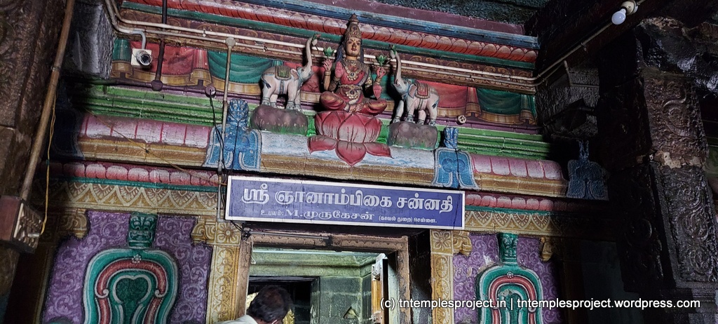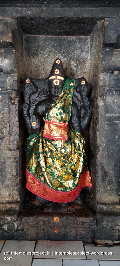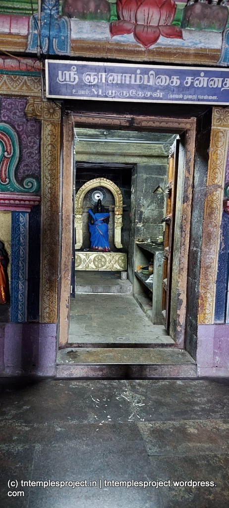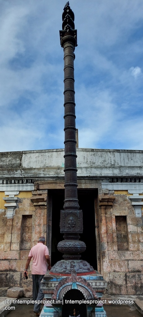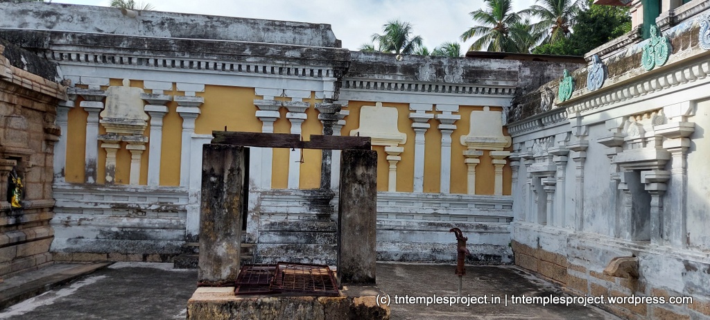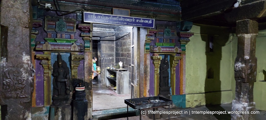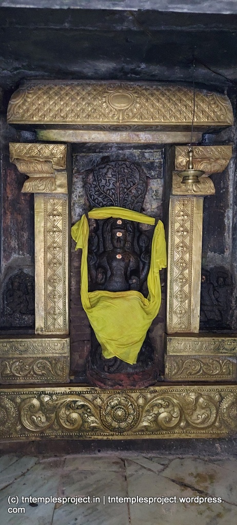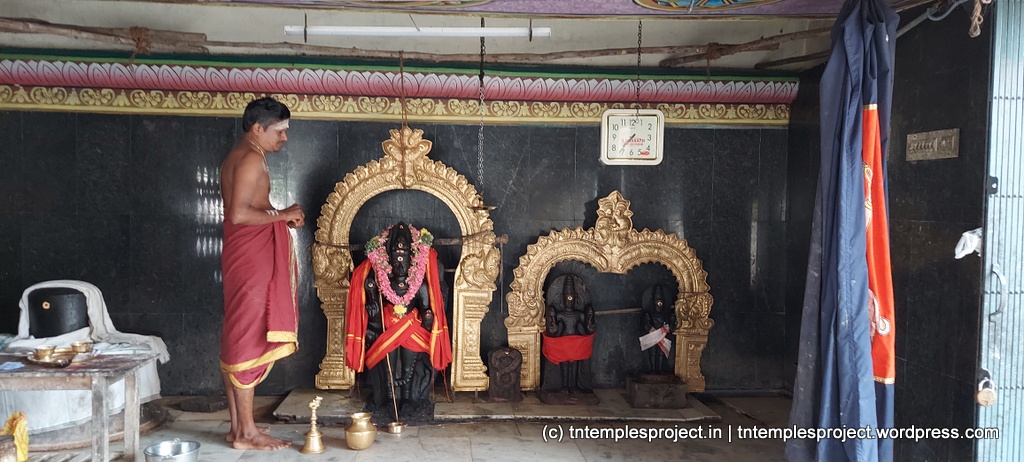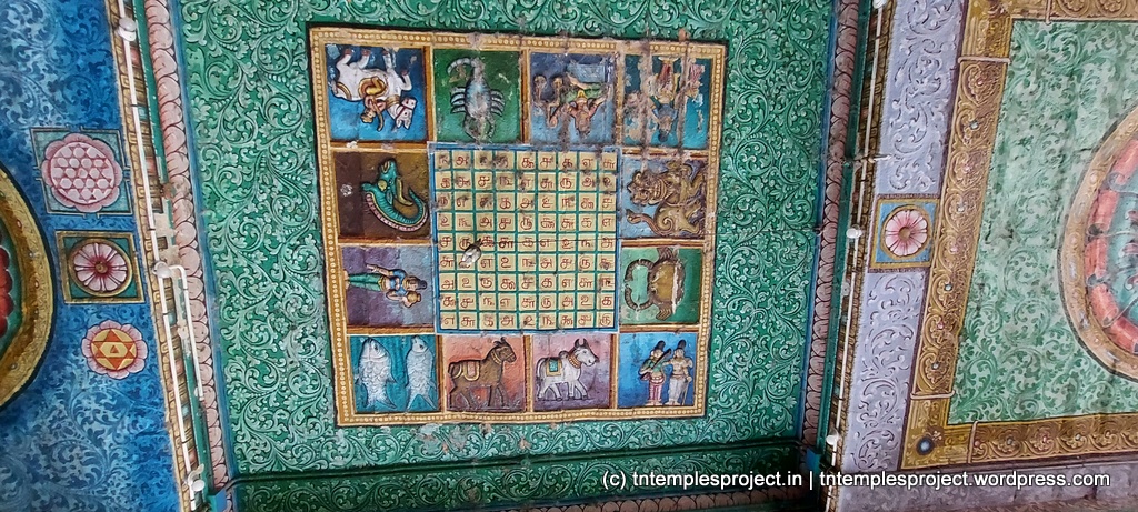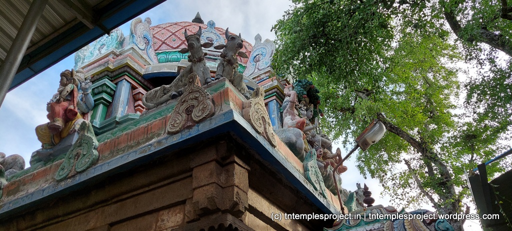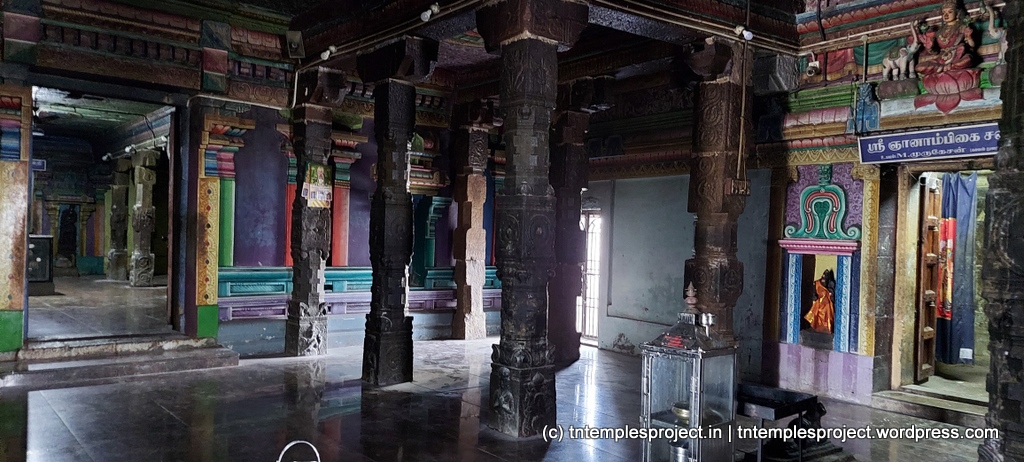 கோயில் கிழக்கு நோக்கியிருந்தாலும், பிரதான நுழைவாயில் தெற்கிலிருந்து உள்ளது, இது நேரடியாக மகா மண்டபத்திற்குள் செல்கிறது. கிழக்கே த்வஜஸ்தம்பம் மற்றும் பலி பீடம் உள்ளது, மேலும் கர்ப்பகிரஹம் கோஷ்டங்களில், வழக்கமான தெய்வங்கள் – விநாயகர், தட்சிணாமூர்த்தி, லிங்கோத்பவர், பிரம்மா மற்றும் துர்க்கை – உள்ளன. விநாயகர், முருகன், கஜலட்சுமி, வாயு லிங்கம், தேவாரம் நால்வர் (அப்பர், சுந்தரர், சம்பந்தர், மாணிக்கவாசகர்), நவக்கிரகம் ஆகிய பிரகாரத்தில் உள்ள சன்னதிகளும் அப்படித்தான். கோயிலில் ஐந்து தனித்தனி லிங்கங்கள் (மூலவர் உட்பட) உள்ளன. இறுதியாக, கிழக்கில் கால பைரவர் தனி மேற்கு நோக்கிய சன்னதி உள்ளது. மகா மண்டபத்தில், உச்சவரம்பில் ஒரு ராசி மண்டலம் உள்ளது, அதில் 12 ராசிகள் (சந்திரன் அறிகுறிகள்) உள்ளன