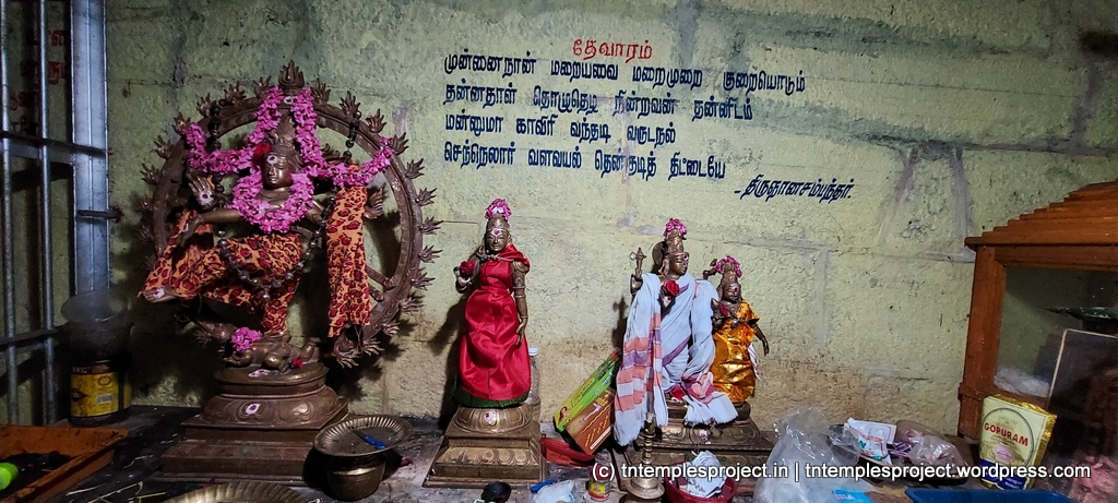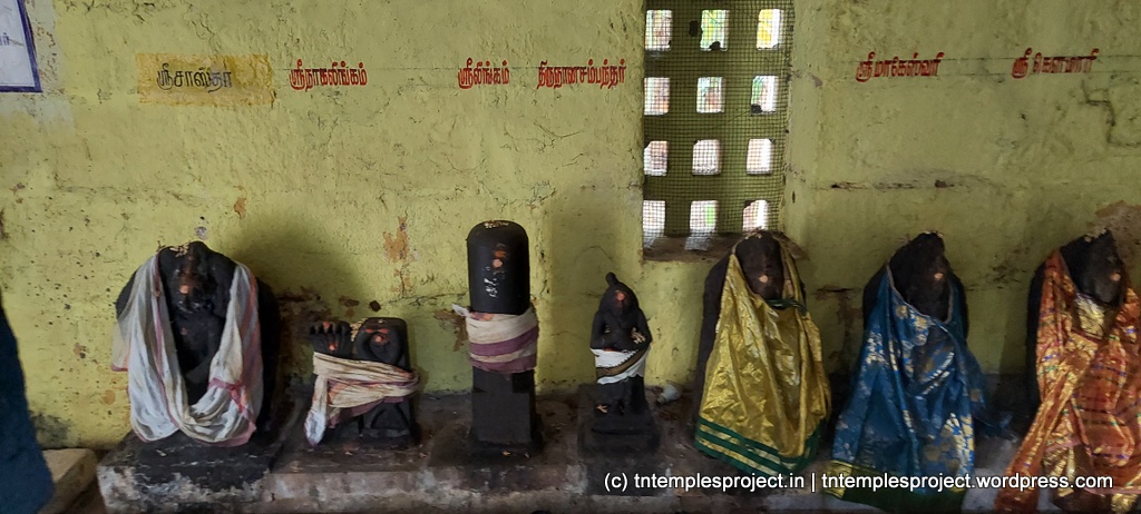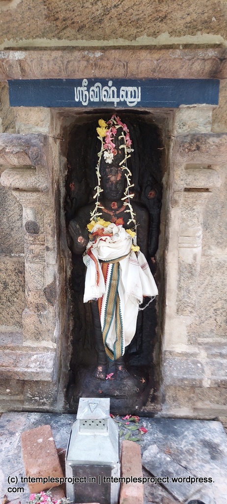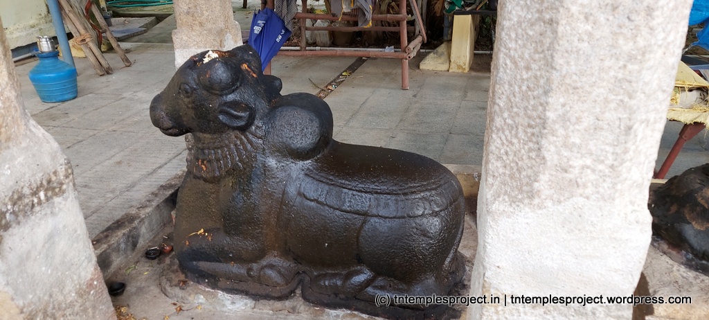 ராஜகோபுரம் இல்லாத நிலையில், கோவிலுக்குள் நுழைந்தவுடன் பலி பீடம் மற்றும் நந்தி மண்டபம் உள்ளது. உள்ளே, மகா மண்டபம், அர்த்த மண்டபம் மற்றும் கர்ப்பகிரகம். கோஷ்டத்தில் வழக்கமான தெய்வங்கள் – விநாயகர், தட்சிணாமூர்த்தி, விஷ்ணு, பிரம்மா மற்றும் துர்க்கை. கர்ப்பகிரஹம் கோஷ்டத்தின் பின்புறத்தில் விஷ்ணுவின் இருப்பு இது மிகவும் பழமையான கோயிலாக இருக்கலாம் என்று கூறுகிறது. பிரகாரத்திலும் விநாயகர், முருகன், சண்டிகேஸ்வரர், சப்த மாதர்கள் மற்றும் தேவாரம் நால்வர் (அப்பர், சுந்தரர், சம்பந்தர், மாணிக்கவாசகர்) ஆகியோருக்கு வழக்கமான சன்னதிகள் உள்ளன.