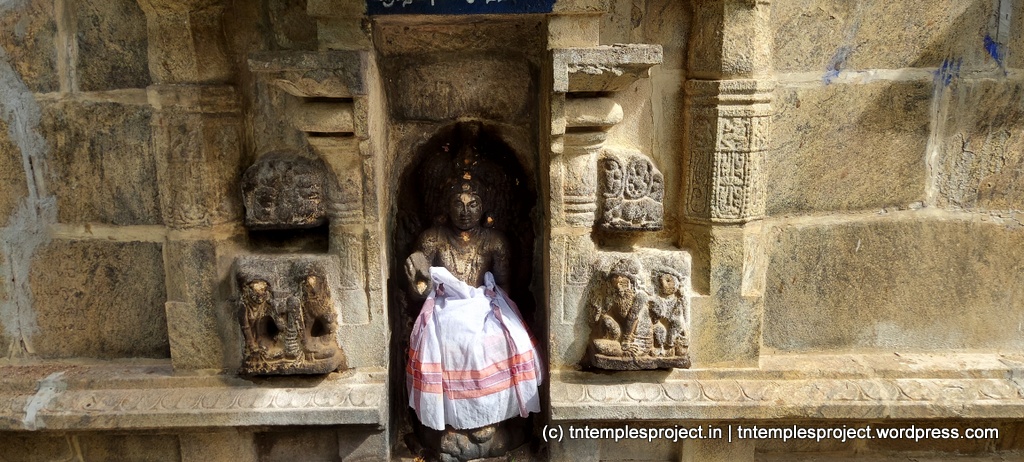 கர்ப்பகிரஹத்தின் வெளிப்புறச் சுவர்களில் பல அடிப்படைச் சிற்பங்கள் உள்ளன, மேலும் பல்வேறு கல்வெட்டுகளும் உள்ளன, அவை முன்பு விவரிக்கப்பட்டுள்ளன. மேலும், இந்தக் கல்வெட்டுகள் முதலாம் பராந்தக சோழன், மற்றும் செம்பியன் மாதேவி மற்றும் கந்தராதித்த சோழன் ஆகியோர் கோவிலுக்கு தங்க நாணயங்கள் நன்கொடையாக அளித்தனர்.