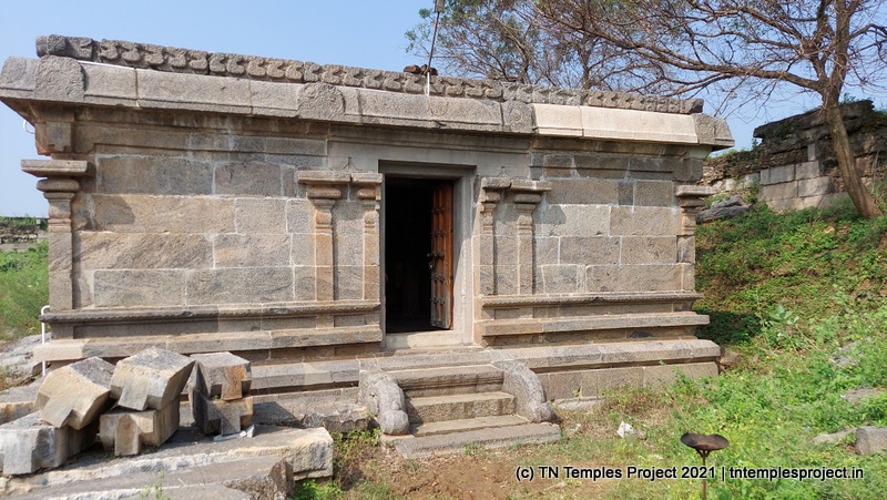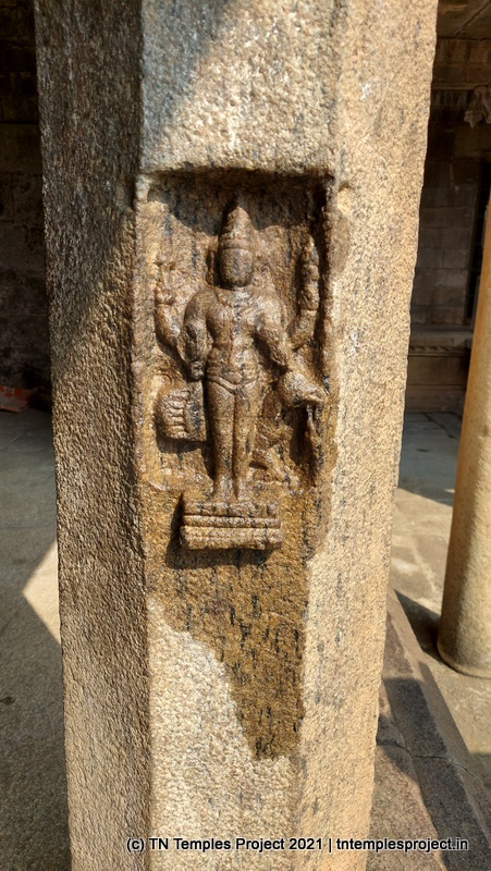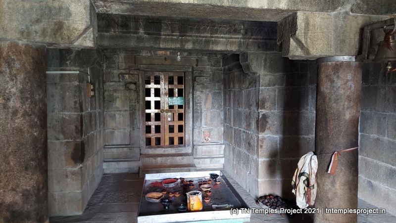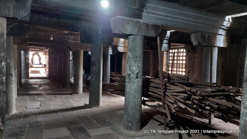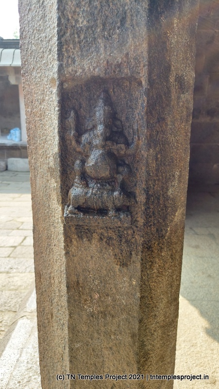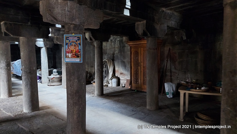 The koshtams are empty, but were once occupied by Vinayakar, Dakshinamurti, Lingodhbhavar, Ashtabhuja Bhairavar, and Ashtabhuja Durga, whose vigrahams are kept in the mukha mandapam.