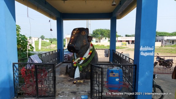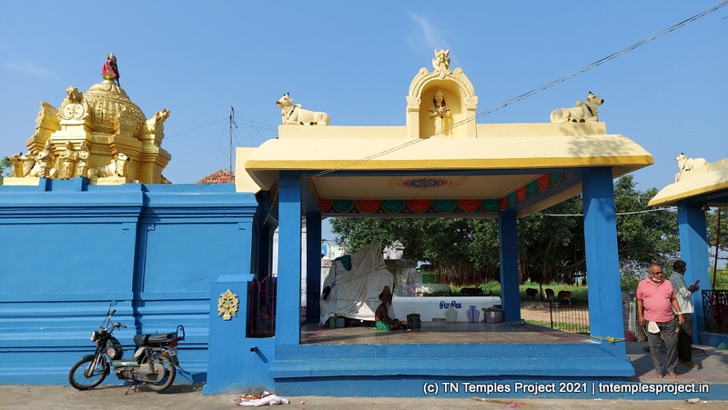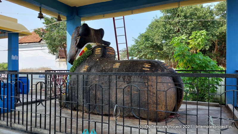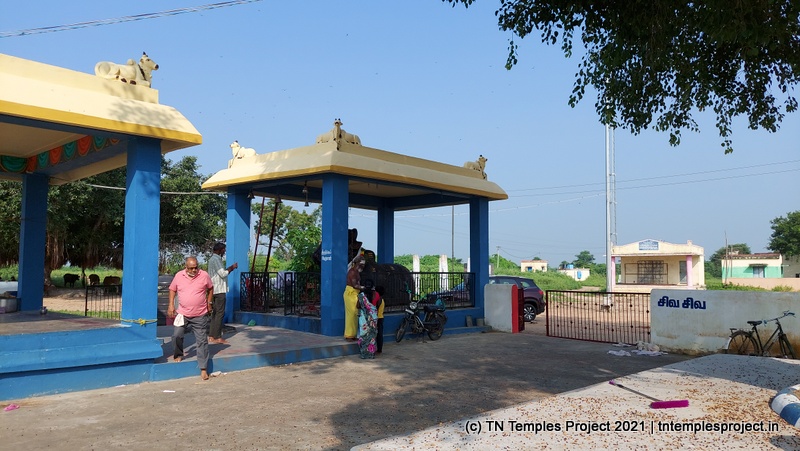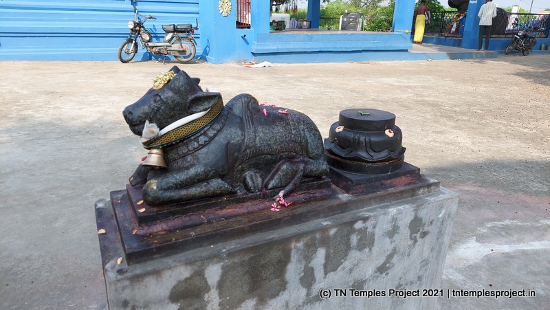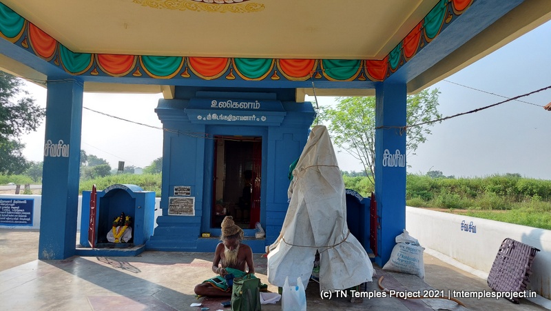 As is the case with temples for the Nayanmars themselves, it is Idankazhi Nayanar in the sanctum of this rather simple temple. Outside the temple and facing the sanctum, is a very large Nandi. Inside the temple premises, the only other shrine is on the southern side, for Siva, with a separate Nandi in front. In keeping with the atmosphere and context of the place, a couple of mystics seem to have made the temple their home!