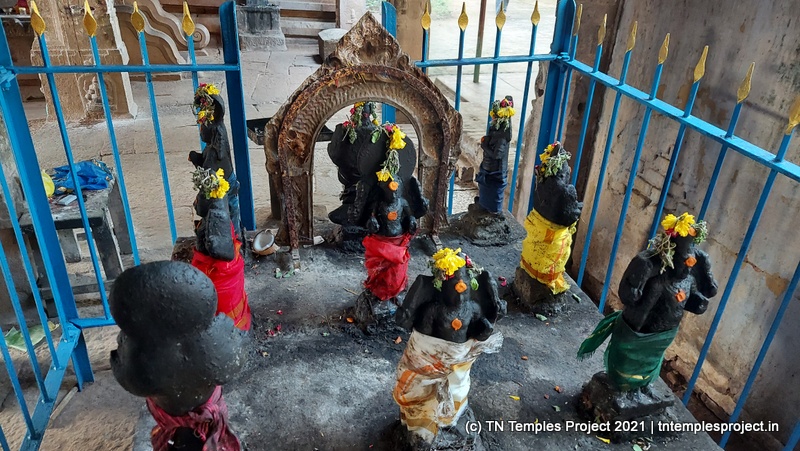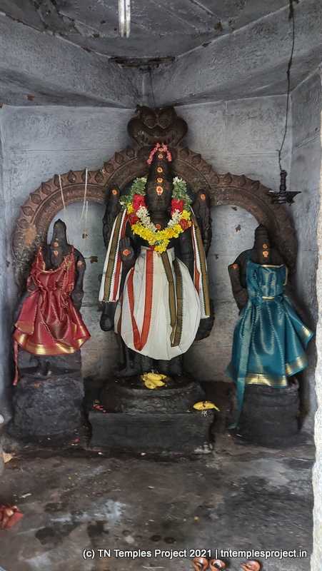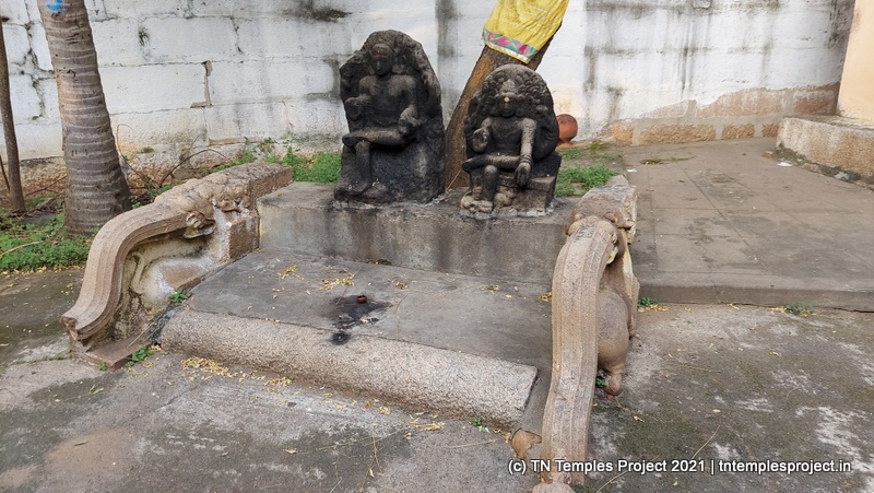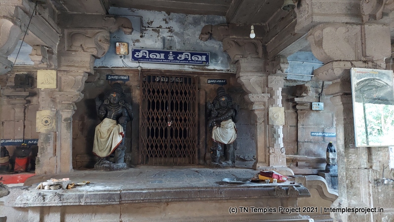 முதன்மையான கோவில் சிவனுக்கானது, மேலும் சிவன் கோவிலுக்கு வடக்கே அம்மன் தனி கோவில் உள்ளது. இந்தக் கோயில்களுக்கான எல்லைச் சுவர்கள் தனித்தனியாக உள்ளன, ஆனால் இரண்டு கோயில்களுக்கும் ஒட்டுமொத்த சுற்றுச்சுவர் இல்லை, அதற்கு இடையில் முனீஸ்வரன் / கருப்பருக்கு ஒரு சிறிய கோயில் உள்ளது. சிவன் கோவிலுக்கு வெளியே ஒரு பெரிய நந்தி உள்ளது.