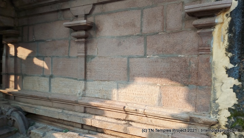 இந்த கோவிலில் 60 கல்வெட்டுகள் உள்ளன, அவை 7 நூற்றாண்டுகளுக்கு மேல் உள்ளன – முதன்மையாக 11 முதல் 17 ஆம் தேதி வரை – இந்த இடத்தின் தொடர்ச்சியான வசிப்பிடத்தைக் குறிக்கிறது. இந்தக் கல்வெட்டுகள் முதலாம் குலோத்துங்க சோழன் மற்றும் பல பாண்டிய மன்னர்கள், விஜயநகர வம்சத்தின் மன்னர் அச்சுதராயர், பிற்காலப் பலகாரர்கள், மற்றும் மருது சகோதரர்கள் ஆகியோரைக் குறிப்பிடுகின்றன. 18 ஆம் நூற்றாண்டு). தெய்வங்களின் மூர்த்திகளை நிறுவுதல், தியாகிகளின் குடும்பங்களுக்கு வழங்கப்படும் மானியங்கள் மற்றும் 10 கோயில் நடனக் கலைஞர்கள் மற்றும் ஒரு நடுவங்கர் இரு சமூகங்களுக்கு இடையே கையெழுத்திடப்பட்ட அமைதி ஒப்பந்தம் உட்பட பல அம்சங்களை கல்வெட்டுகள் கையாளுகின்றன. கல்வெட்டுகள் இந்த இடத்தை ஒரு பெரிய நகரமாகவும், பரந்த சாலைகளைக் கொண்டதாகவும் விவரிக்கின்றன