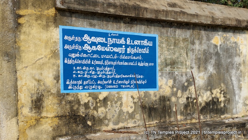 | Moolavar: | Agameswarar | Ambal / Thayar: | Avudainayaki |