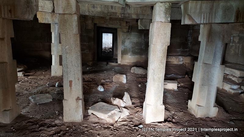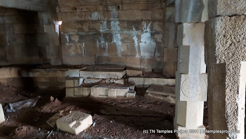 உள்ளன. பரிவார தெய்வங்களுக்கான சன்னதிகளுடன், பிரகாரங்கள் இருந்ததா என்பது தெளிவாகத் தெரியவில்லை.