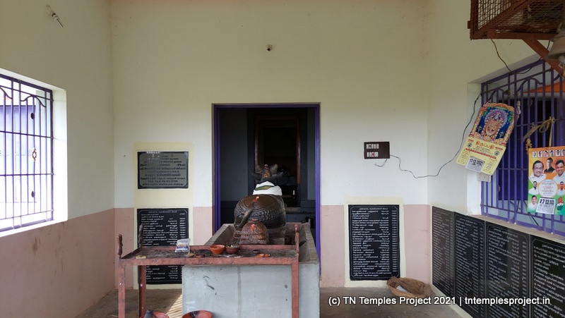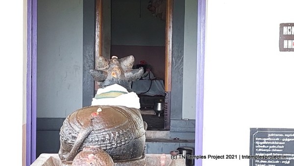 உள்ளே ஒரு அழகான கல் வார்ப்பு நந்தி உள்ளது – நிச்சயமாக அசல் கோவிலில் இருந்து, அதன் வடிவமைப்பின் படி, இது அசல் சோழர் கால நந்தியாக இல்லாவிட்டாலும். சுவாரஸ்யமாக, நந்தியின் தலை இடது பக்கம் திரும்பியுள்ளது, இது அசாதாரணமானது.