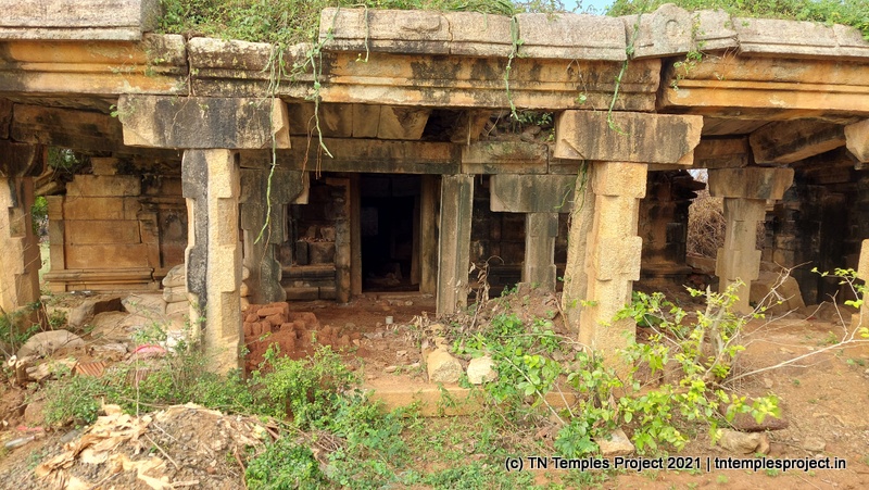 இக்கோயிலில் மூலவர் வீற்றிருக்க, மகா மண்டபம், முக மண்டபம், நீதிமன்ற அறை மற்றும் கர்ப்பகிரகம் ஆகியவை கிழக்கு நோக்கி அமைந்துள்ளன. வலதுபுறம், அதாவது தெற்கு நோக்கி, அம்மன் வீற்றிருக்கும் தனி சன்னதி. தெய்வங்களுக்கான கோஷ்டங்கள் உள்ளன, ஆனால் இப்போது காலியாக