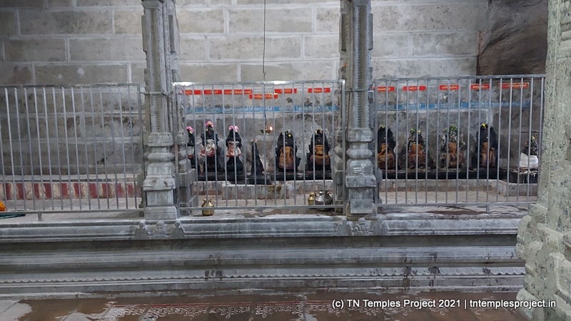 மற்ற கோஷ்ட தெய்வங்கள் மற்றும் பரிவார தெய்வங்கள் அவற்றின் வழக்கமான சன்னதிகளைக் கொண்டுள்ளன. இந்த சன்னதிகளில் பல, மகா, அலங்கார மற்றும் திருமுறை மண்டபங்கள், 7 ஆம் நூற்றாண்டிற்குப் பிறகு பல்வேறு காலங்களில் சேர்க்கப்பட்டவை. சப்த மாத்ரிகைகள் சக்தி சன்னிதி என்று அழைக்கப்படும் இடத்தில் தனித்தனியாகப் பதிக்கப்பட்டுள்ளன.