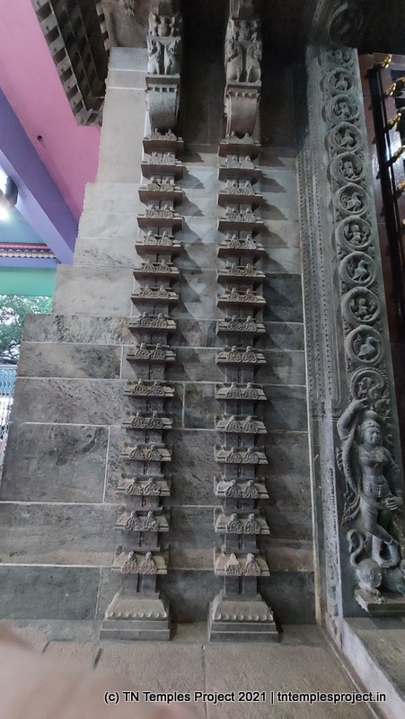 விநாயகர் மற்றும் சிவன் கோயில்களுக்கு இடையில் மனித உருவத்தில் ஒரு நபரின் அசாதாரண அடித்தள நிவாரணம் உள்ளது, அதில் இரண்டு உதவியாளர்கள் உள்ளனர். இது ஒரு ராஜாவாக, ஹரிஹரர் (பாதி சிவன், பாதி விஷ்ணு) மற்றும் அர்த்தநாரீஸ்வரர் உட்பட நிபுணர்களால் மிகவும் வித்தியாசமாக விளக்கப்பட்டுள்ளது. எந்த சின்னங்களும் சின்னங்களும் இல்லாதது (இது போன்ற சிற்பங்களுக்கு கிட்டத்தட்ட சரியானது அல்ல) இது ஒரு ராஜாவாக இருப்பதற்கான சாத்தியத்தை வெகு தொலைவில் ஆக்குகிறது. அப்படியானால், இது ஹரிஹரர் அல்லது அர்த்தநாரீஸ்வரராக இருக்க வேண்டும், இது மிகவும் அரிதானது மற்றும் அசாதாரணமானது.