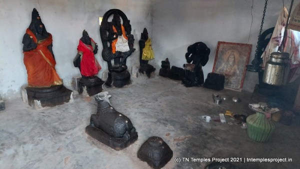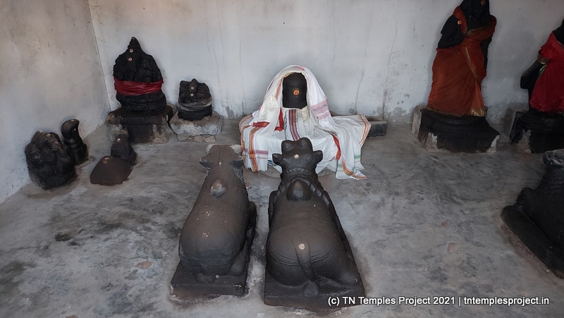 அதிர்ஷ்டவசமாக, கோயிலை ஒட்டிய தகரக் கொட்டகையில் வைக்கப்பட்டுள்ள சில தெய்வங்களின் மூர்த்திகளை உள்ளூர்வாசிகள் காப்பாற்றியுள்ளனர். இதில் ஒரு சிவலிங்கம், மூன்று நந்தி மூர்த்திகள், அம்மன், முருகன், சண்டிகேஸ்வரர், பல விநாயகர் மூர்த்திகள், நாகர், அவைகள் உள்ளன