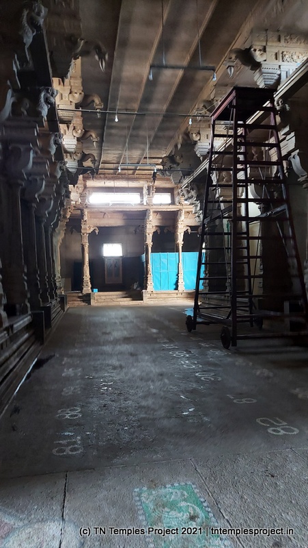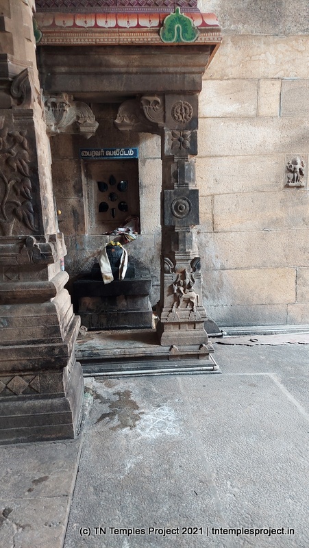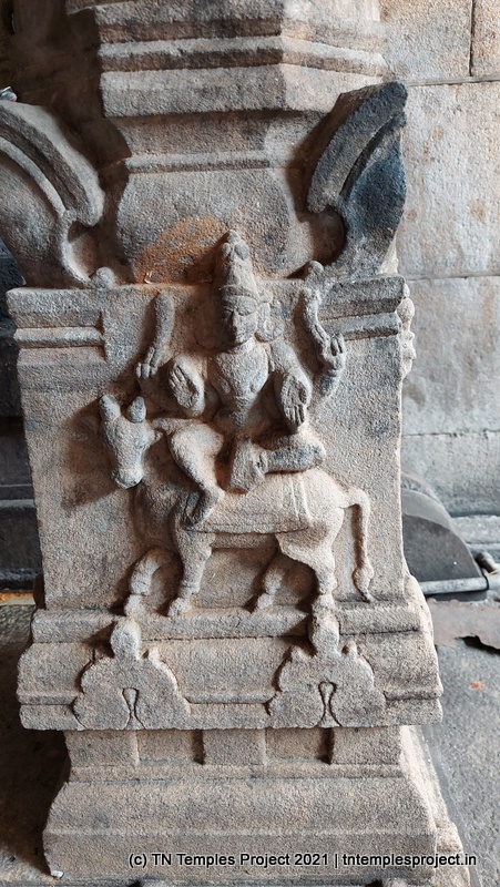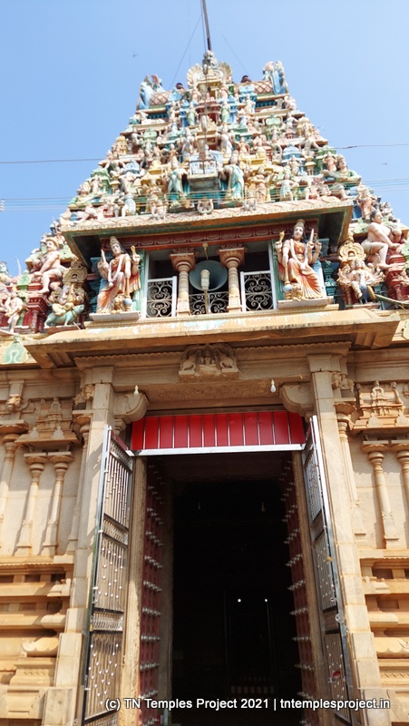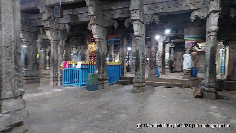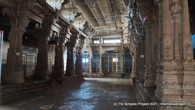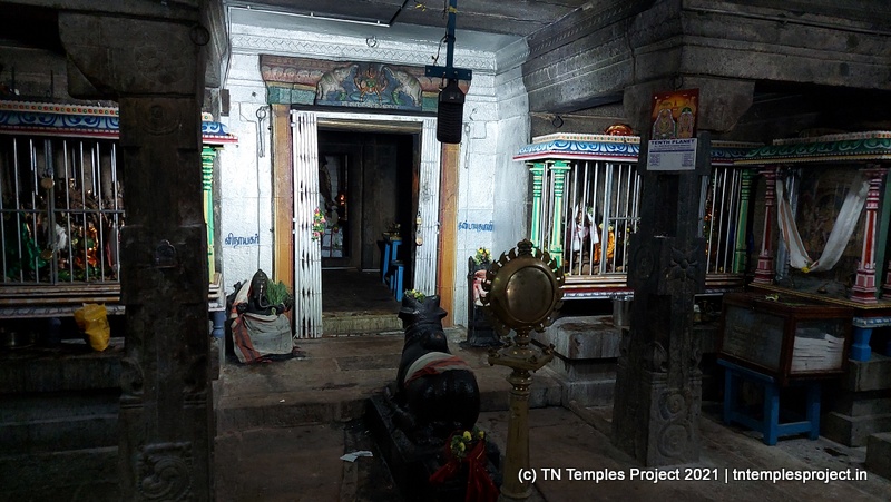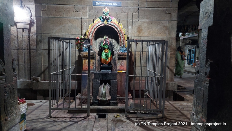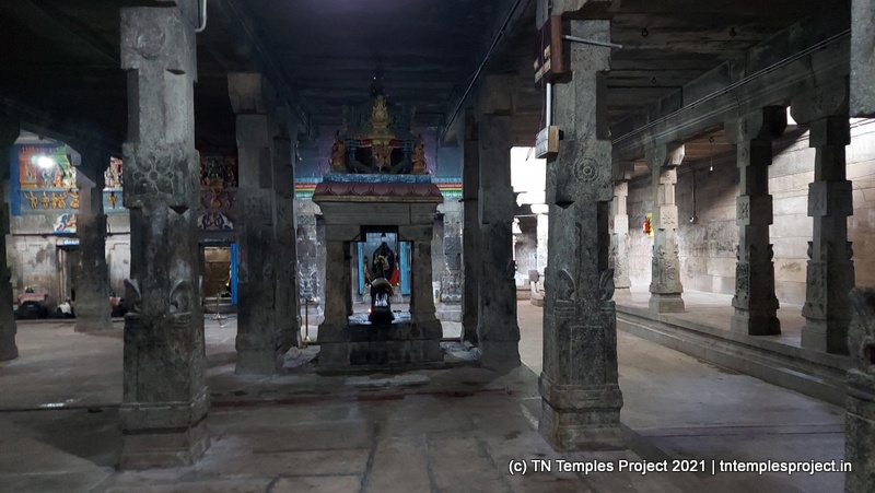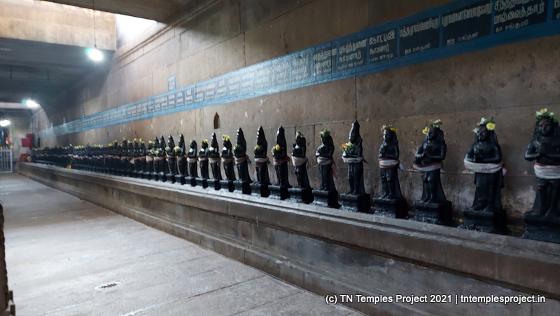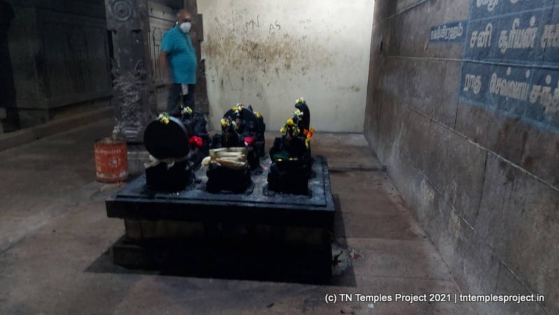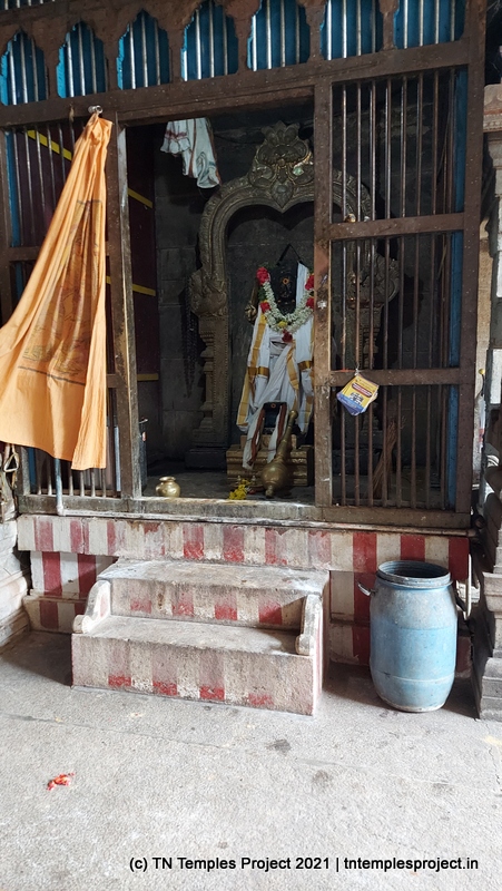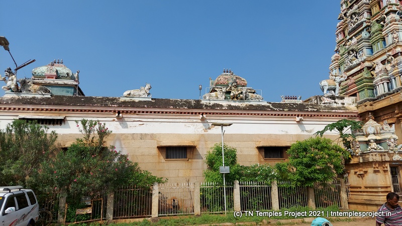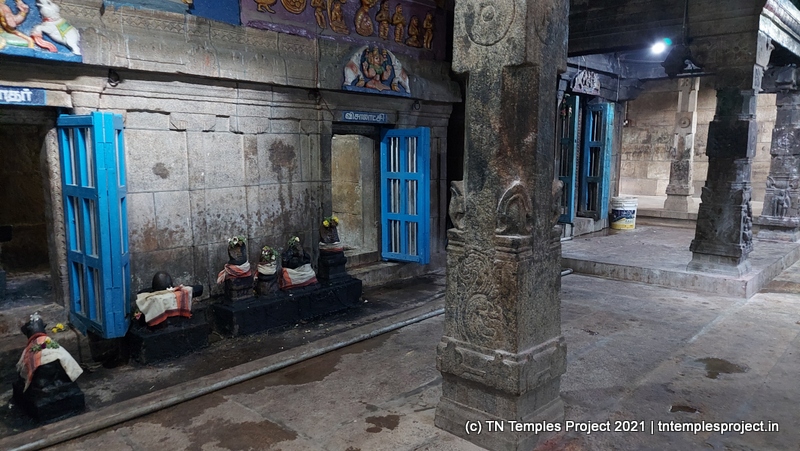 In the koshtam are the usual murtis of Nardhana Vinayakar, Dakshinamurti, Lingodhbhavar, Brahma and Durga. In the prakaram is a long enclosure with the murtis of the 63 Nayanmars, followed by Vinayakar, Kasi Viswanathar with Visalakshi, Vishnu as Santana Krishnan, Murugan, Gajalakshmi, Saraswati, Chandikeswarar, Bhairavar, Chandran and Suryan. There is a separate Navagraham shrine in the northern part of the prakaram.