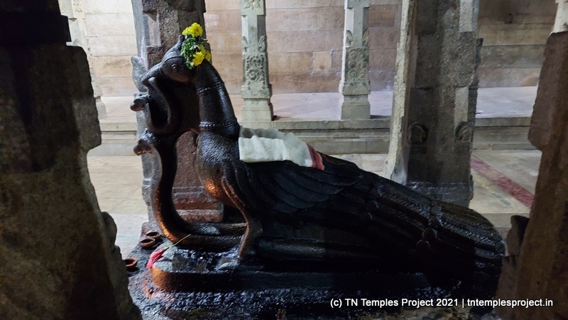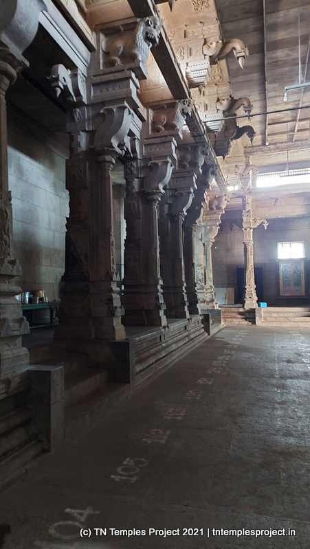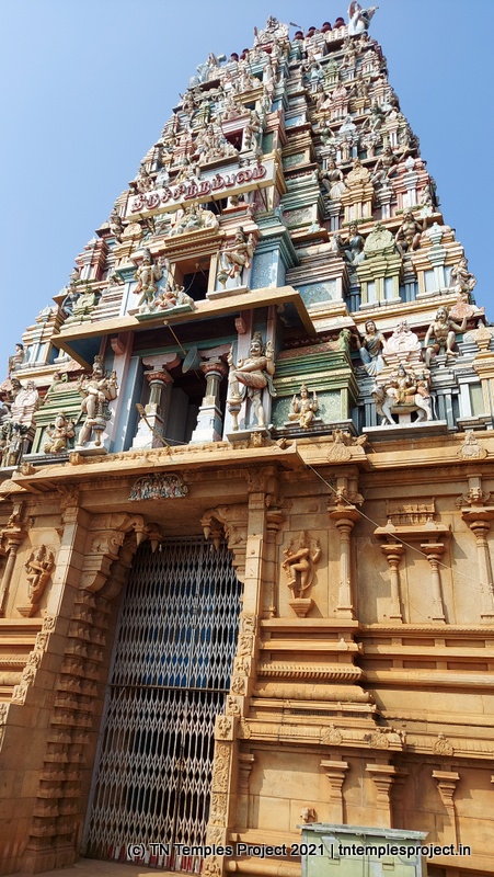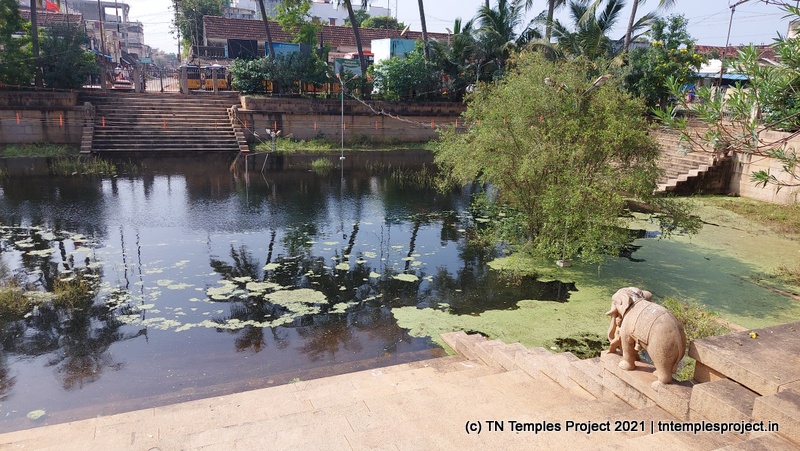 This temple’s main raja gopuram faces east; however, the eastern entrance is closed shut. Instead, one enters from the southern entrance, from near the temple’s small but beautiful tank, balustraded by sculptures of elephants on either side.