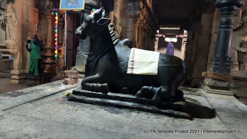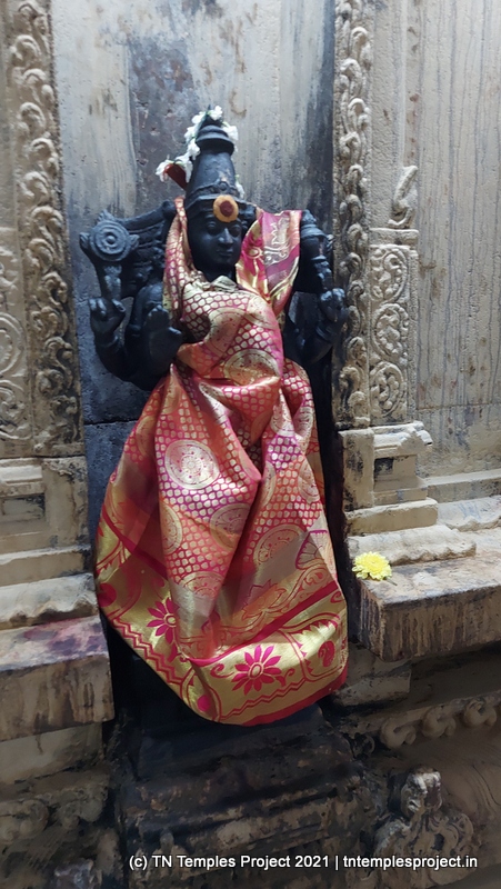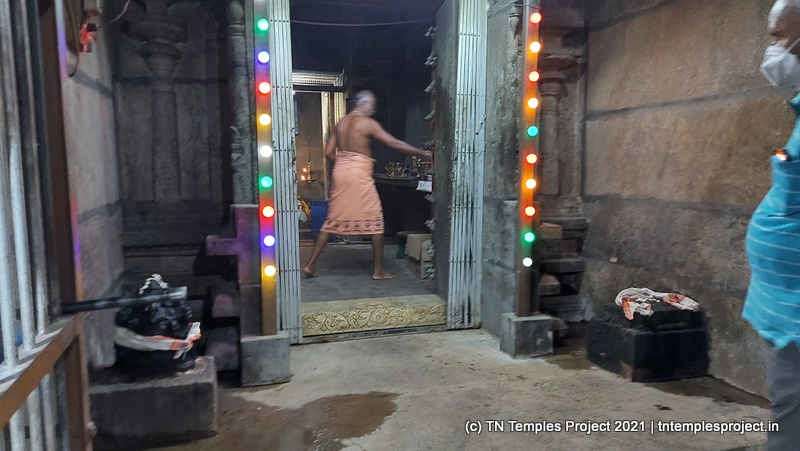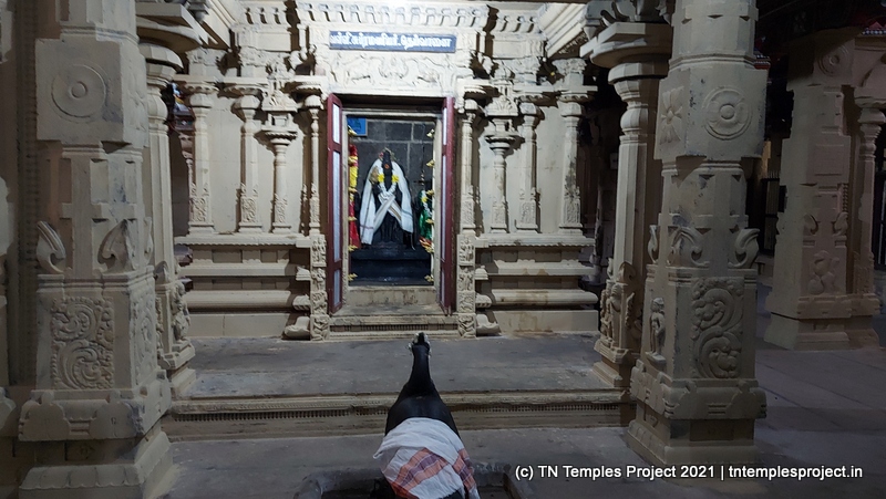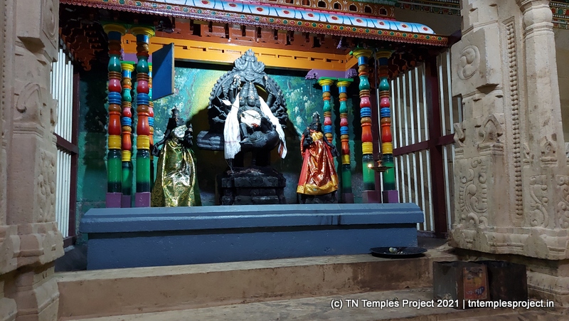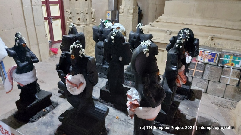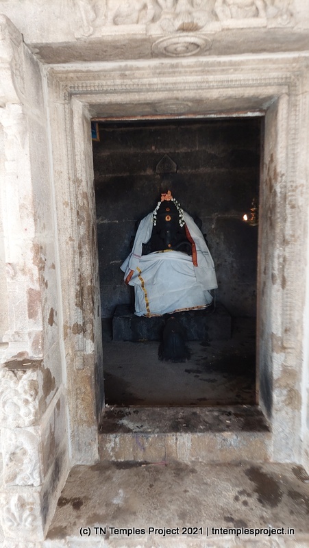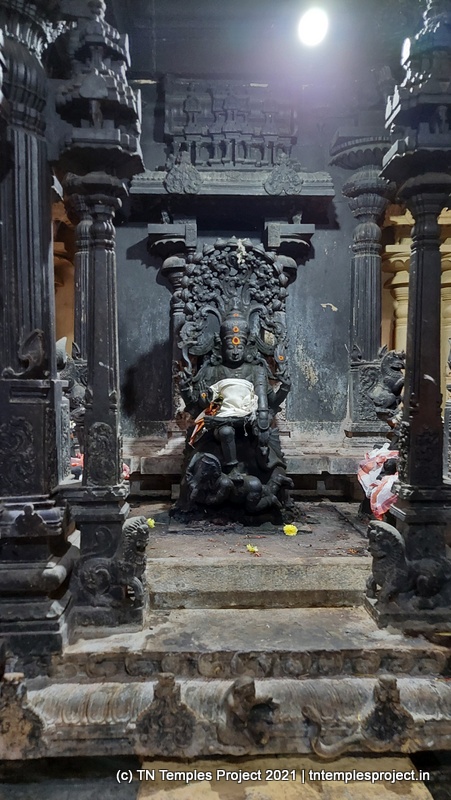 While the moolavar here is Siva in Lingam form, He is worshipped as Bhairavar. Particular worship is offered to Bhairavar here, on the eighth day of the waning phase of the moon (தேய்பிறை அஷ்டமி), including offering vada-malai (as one normally sees with Anjaneyar). This temple is perhaps the fount of Bhairavar worship in the region, particularly amongst the Nagarathar community. One could even extend this to suggest that temples in the Chola region with a prominent Bhairavar worship practice, also have significant Nagarathar involvement.