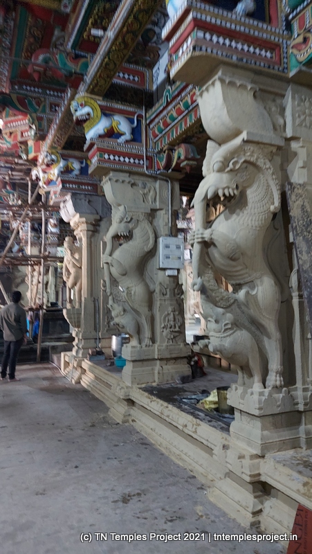 The various beliefs about worshipping at this temple include material prosperity, success in business, relief from all sorts of illnesses, as well as the ability to face one’s inimical forces with calmness and mental strength. There is a sculpture of two lizards behind the Amman sannidhi, worshipping which is said to deliver all wishes to the devotee.