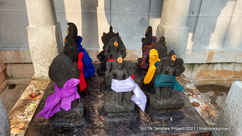 கோஷ்டங்களில் விநாயகர், தட்சிணாமூர்த்தி, லிங்கோத்பவர், பிரம்மா மற்றும் துர்க்கை ஆகியோரின் வழக்கமான மூர்த்திகள் உள்ளனர். பிரகாரத்தில் விநாயகர், முருகன், கஜலட்சுமி, சண்டிகேஸ்வரர், பைரவர், சூரியன், சந்திரன் ஆகியோருக்கு பரிவார தேவதை சன்னதிகளும், தனி நவக்கிரகம் சன்னதியும் உள்ளன.