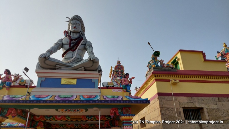 This temple is located about 18 km from Karaikudi. Coming in from Karaikudi, one is met by a huge stucco image of Siva seated in meditation, which serves as the northern entrance arch for the temple.
