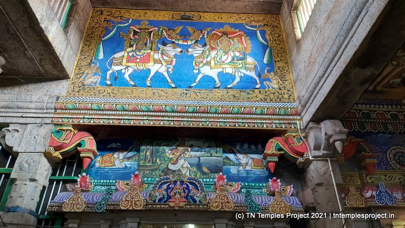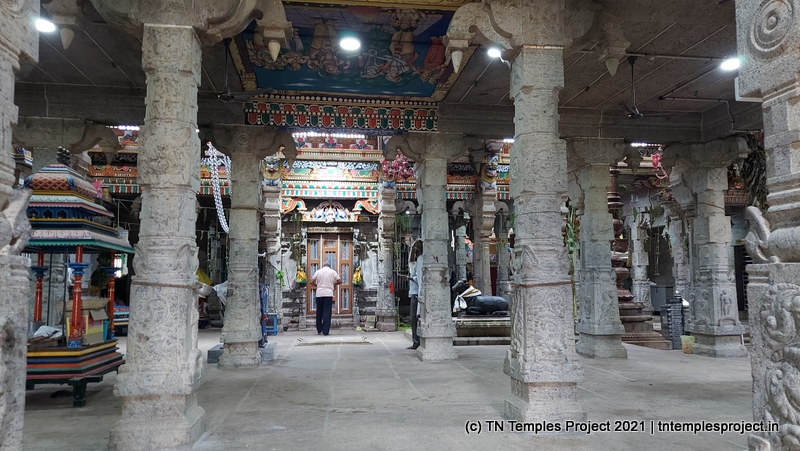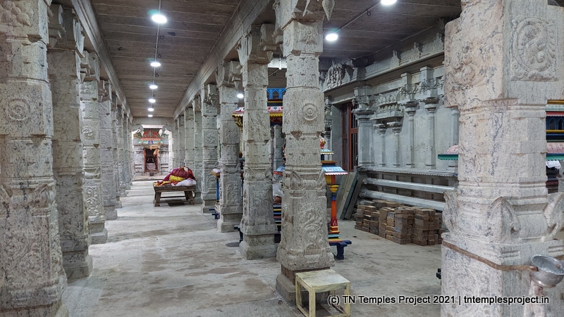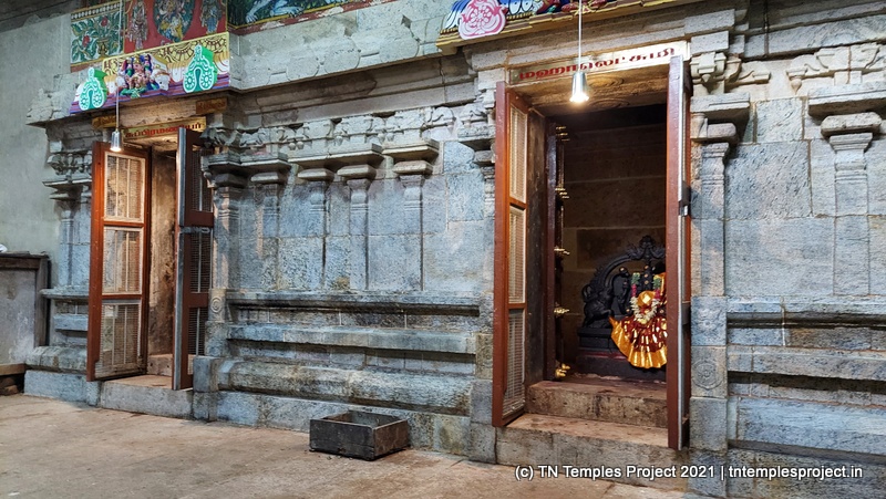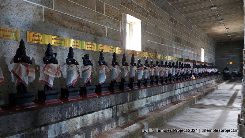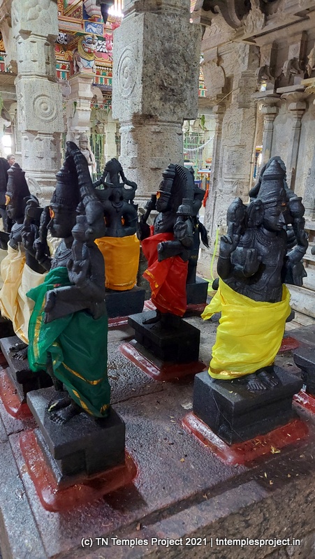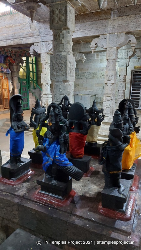 On the southern side of the prakaram is a row dedicated to the 63 Nayanmars, while on the western side, are sannidhis for parivara deites – Vinayakar, Kasi Viswanathar and Visalakshi, Murugan, and Mahalakshmi. On the northern side are Chandikeswarar, Bhairavar, Chandran and Suryan, and a separate Navagraham shrine.