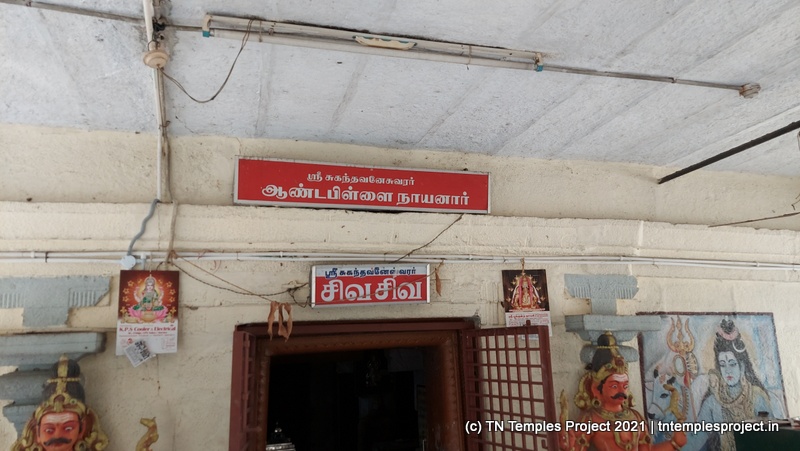 This place is said to have been a forest of fragrant kadamba flowers and trees, and therefore went by the names Kadamba Vanam and Sugandha Vanam. Accordingly, Siva is named Sugandha Vaneswarar here. Another name for the moolavar here is Andapillai Nayanar. Amman is regarded as a friend of the devotees, and is believed to be always close to them, and so She is named Sameebavalli (sameebam = close / near).