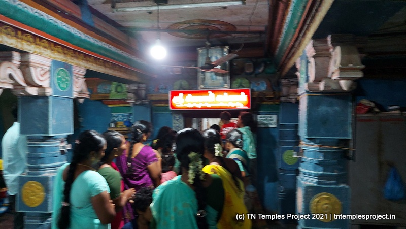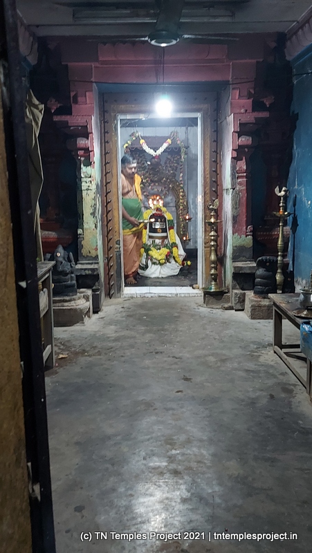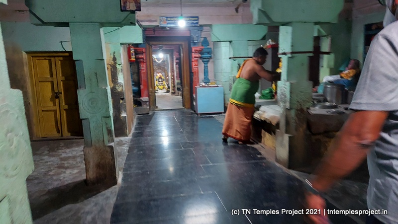 Immediately after this is the maha mandapam, where the garbhagriham of the moolavar lies straight ahead, while the shrine of Sivakami Amman is on the right, facing south. A further corridor brings us through the ardha mandapam which leads to the antarala and the garbhagriham.
