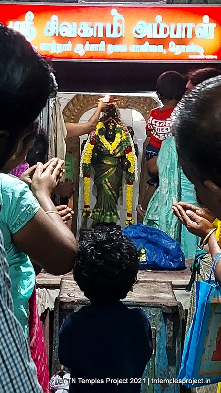Thondi is located on the way along the coast, from Vedaranyam to Rameswaram. The sthala puranam of the Perumal temple in the village states that in the Ramayanam, Rama worshipped Vishnu at that temple before proceeding to Lanka. It is therefore possible that there is a sthala puranam for this Siva temple here as well, connected to the Ramayanam. What gives this more credence is that the Perumal temple is called Tirumerkovil or Tirumerkukovil, indicating it is on the west, which would mean that this temple, which lies east of the Perumal temple, existed at the time of the Perumal temple which was built in the early 14th century.