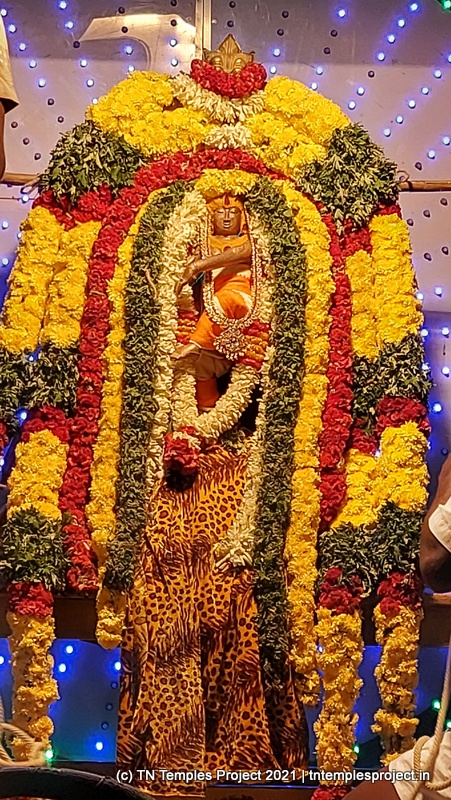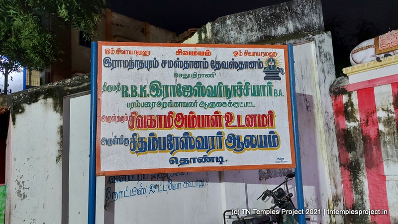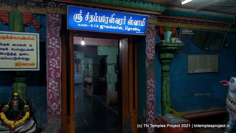 Thondi is a small fishing village on the east coast, in the Ramanathapuram district. The Hindu population here is in the minority, despite which there are three temples of prominence in this village – this Chidambareswarar temple for Siva, Undhi Pootha Perumal temple, and a separate Amman temple. We visited only the Chidambareswarar temple, and it happened to be at the time of the street procession (swami purappadu) on the day of Tiruvadhirai in December 2021.