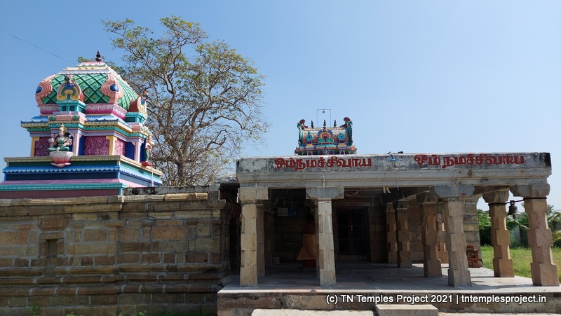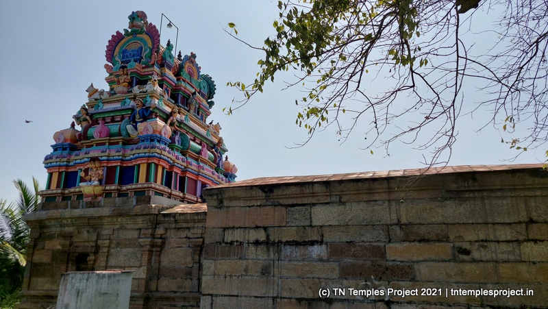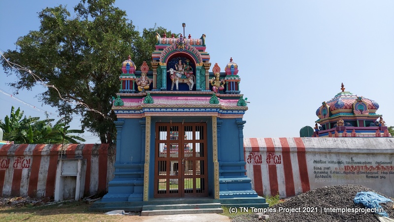 கோவிலில் ராஜகோபுரம் இல்லை, ஆனால் ரிஷப வாகனத்தில் சிவன் மற்றும் பார்வதியின் ஸ்டக்கோ உருவத்துடன் ஒரு வளைவு உள்ளது. கோவில் வளாகத்தின் மற்ற பகுதிகள் மிகவும் பெரியதாகவும் நன்கு பராமரிக்கப்பட்டதாகவும் உள்ளது. த்வஜஸ்தம்பம் இல்லை, ஆனால் பலி பீடம் மற்றும் நந்தி மண்டபம் உள்ளது.