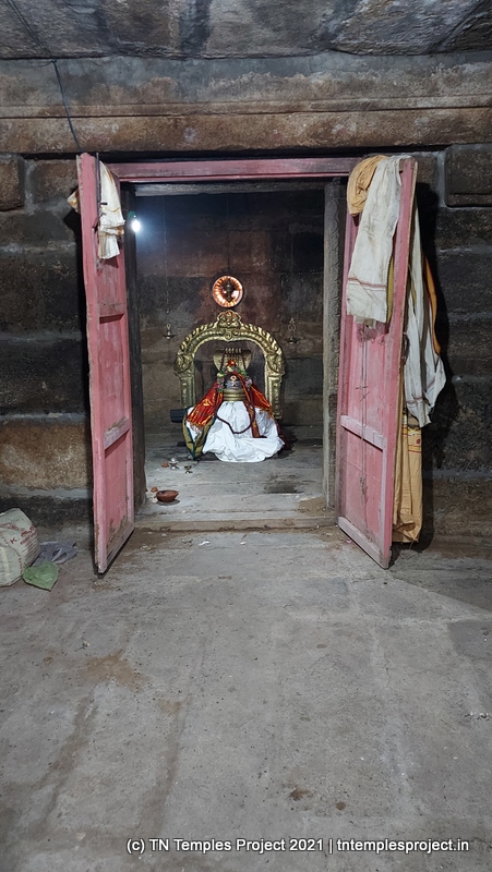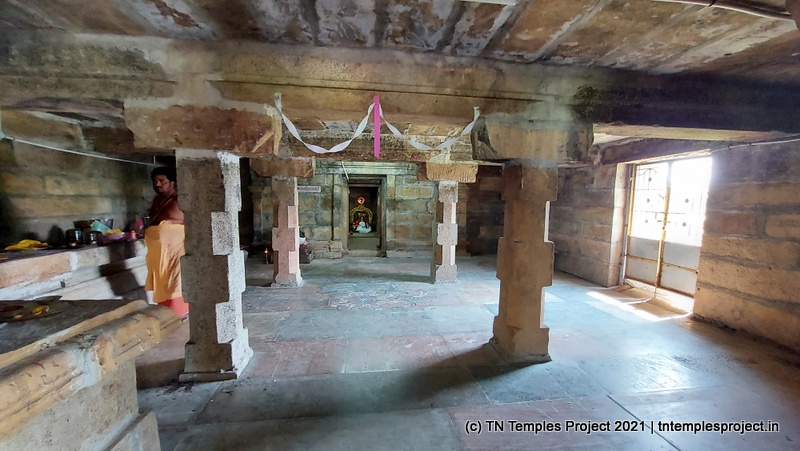 அர்த்த மண்டபத்தின் உள்ளே அனுக்ஞை விநாயகர் கர்ப்பகிரஹத்தின் நுழைவாயிலில் காவலாக இருக்கிறார், அவருக்கு அருகில் ஒரு சிறிய நந்தி உள்ளது. அர்த்த மண்டபத்தின் இடதுபுறத்தில் உயரமான கல் மேடைகள் உள்ளன, பொருள்களை சேமிப்பதற்காக. பின்னர் முன் அறையைப் பின்தொடர்ந்து, கர்ப்பக்கிரஹத்தைப் பின்தொடர்கிறது. சுவாரஸ்யமாக, கர்ப்பகிரஹத்திற்கு மேலே உள்ள விமானம், கோவில் நுழைவாயிலில் ஒருவர் பார்க்கும் பிரதான கோபுரம் போன்று கட்டப்பட்டுள்ளது, இது இந்த இடத்தை மிகவும் தனித்துவமாக்குகிறது.