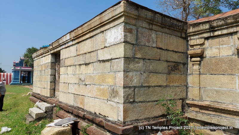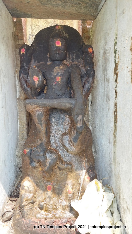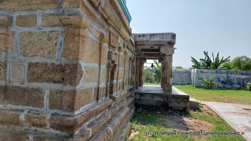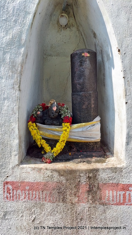 கோஷ்டத்தில், ஒருவர் துர்க்கை மற்றும் தட்சிணாமூர்த்தியை மட்டுமே காண்கிறார், பிந்தையவரின் விக்ரஹம் மிகவும் பழையதாகத் தோன்றுகிறது. பிரகாரத்தில் விநாயகர், முருகன், பைரவர், சண்டிகேஸ்வரர், மெய்யப்ப நாயனார் (கருப்பர்) சன்னதிகள் உள்ளன. கருப்பரின் சன்னதி கோயிலின் வெளிப்புறச் சுவரின் உள்புறத்தில் ஒரு இடத்தில் உள்ளது, மேலும் அதற்கு அடுத்ததாக உயரமான லிங்கபாணம் உள்ளது, கீழே ஒரு யானையின் விக்ரஹமும் உள்ளது, இது ஒரு அய்யனார் / கருப்பர் என்பதை தெளிவாக உறுதிப்படுத்துகிறது. . நவகிரகம் சன்னதி இல்லை, சூரியன் மற்றும் சந்திரனின் சன்னதிகளோ அல்லது விக்ரஹங்களோ இல்லை, இந்த கோவில் 1000 ஆண்டுகளுக்கு மிகவும் பழமையானது என்பதைக் குறிக்கிறது.