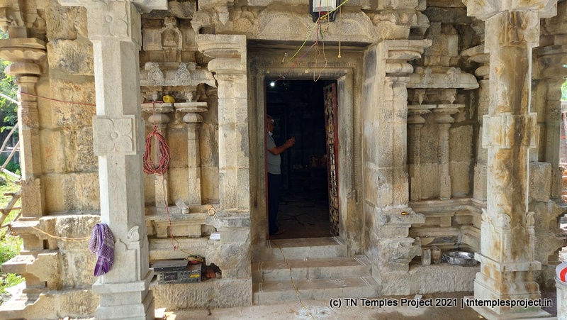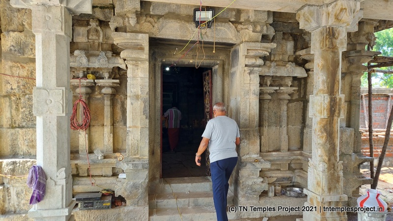தற்போது, கோவிலின் நுழைவு வாயில் தெற்கு பகுதியில் உள்ள மதில் சுவர் உடைந்து கிடக்கிறது. புனரமைப்புப் பணிகள் நிறைவடைந்த பிறகு, கோயிலுக்கு சரியான கிழக்கு நோக்கிய நுழைவாயில் இருக்கும், இது மகா மண்டபத்திற்கு செல்லும். அது நம்மை அர்த்த மண்டபம் மற்றும் கர்ப்பகிரகத்திற்கு அழைத்துச் செல்லும், அங்கு குருக்கள் நேரடியாக அழைத்துச் சென்றார்கள்.