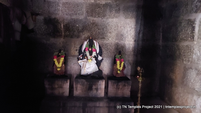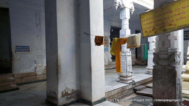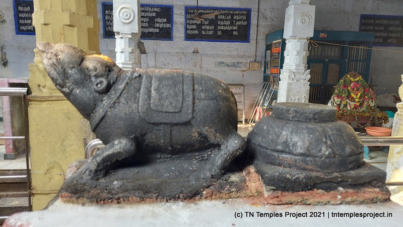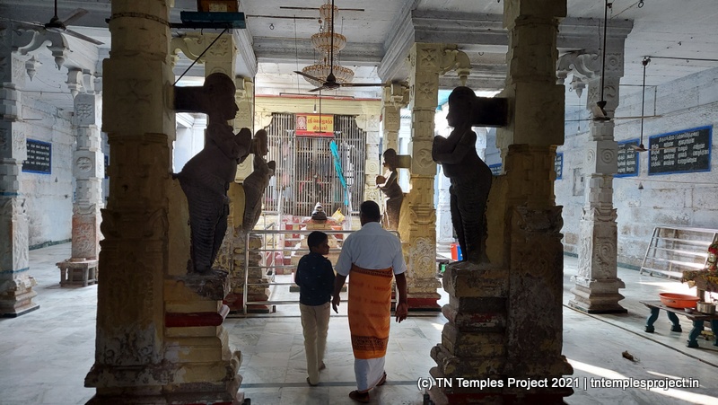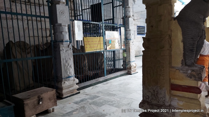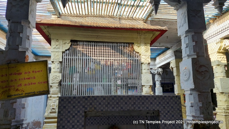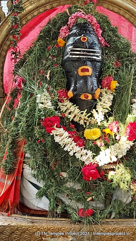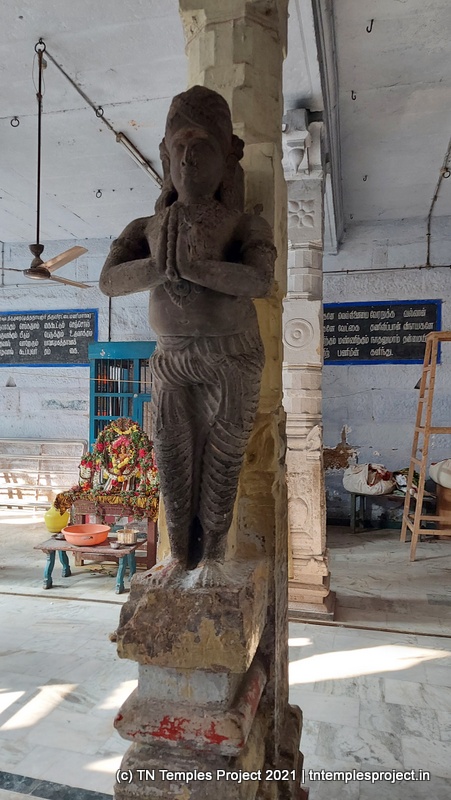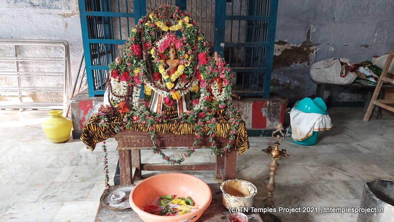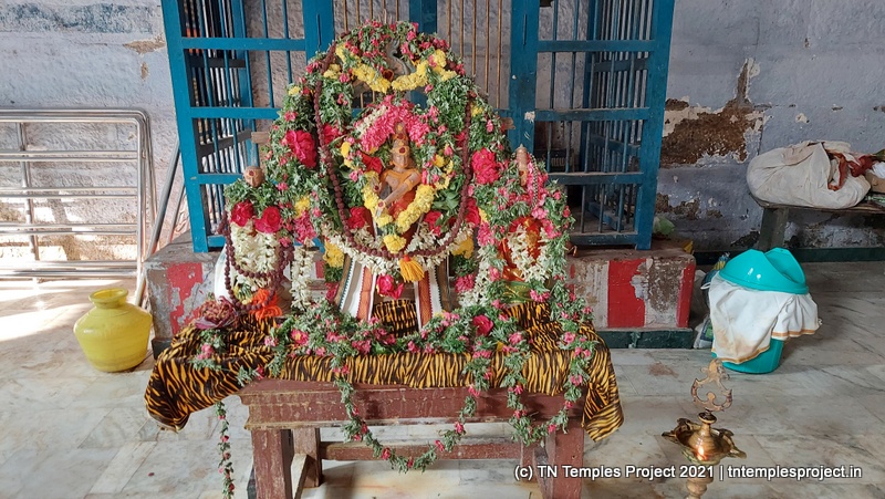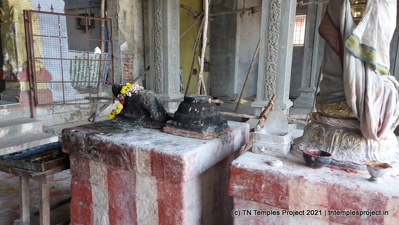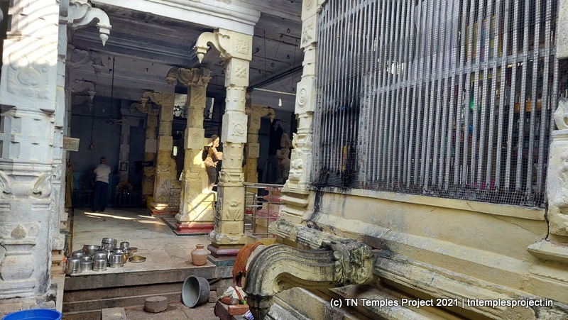 At the time of our visit in December 2021 (on the day of Tiruavdhirai), the temple was being renovated. Unfortunately, the half-built cement façade that is coming up seems to be a poor replacement for the traditional entrance, a picture of which (from the internet, source unknown) is presented here.