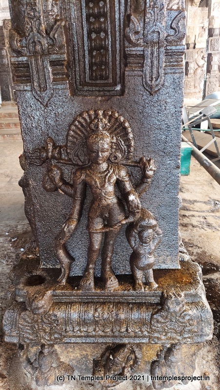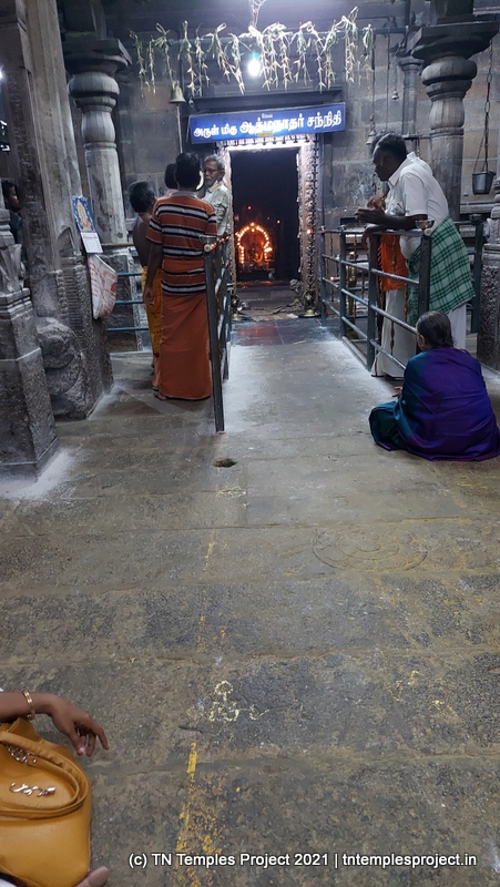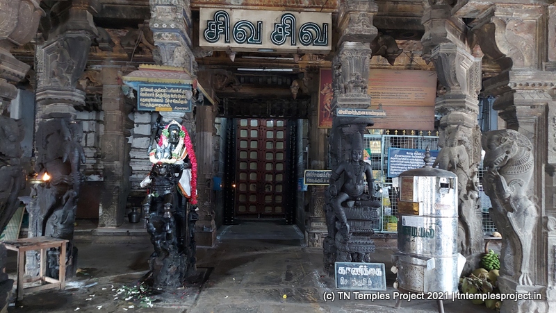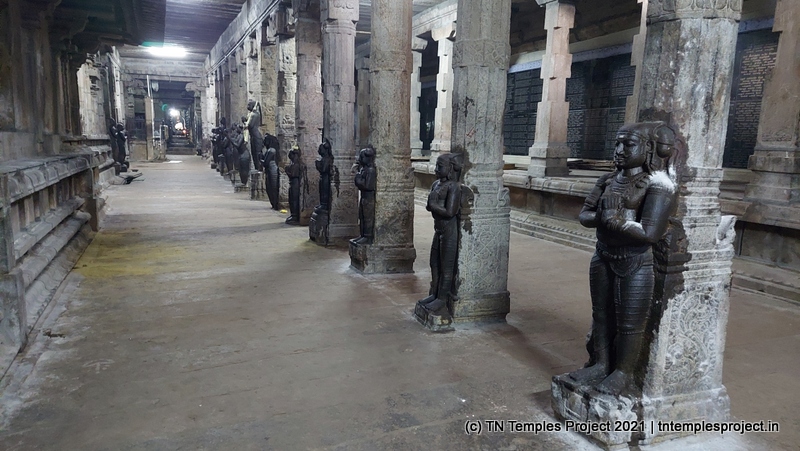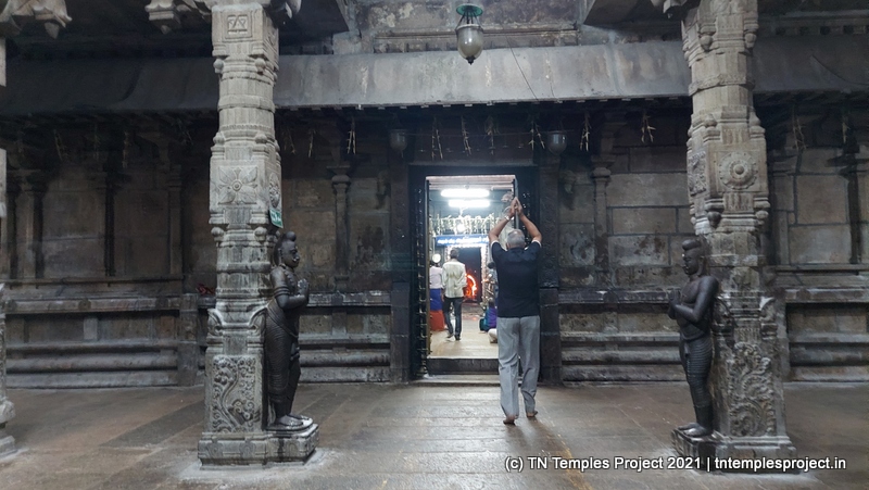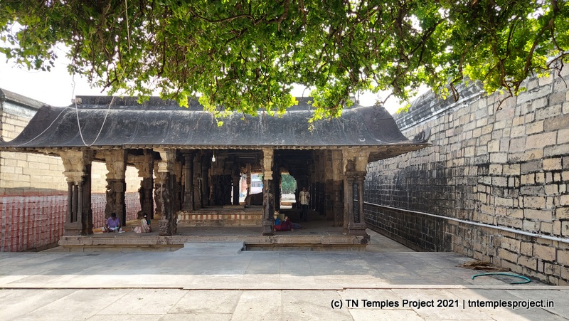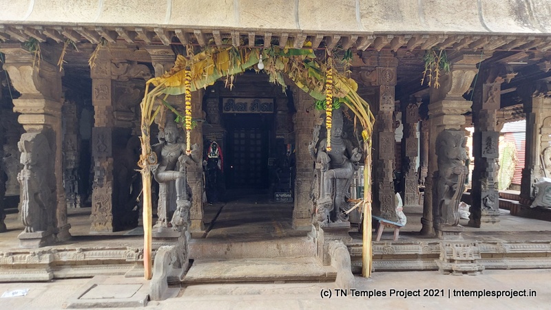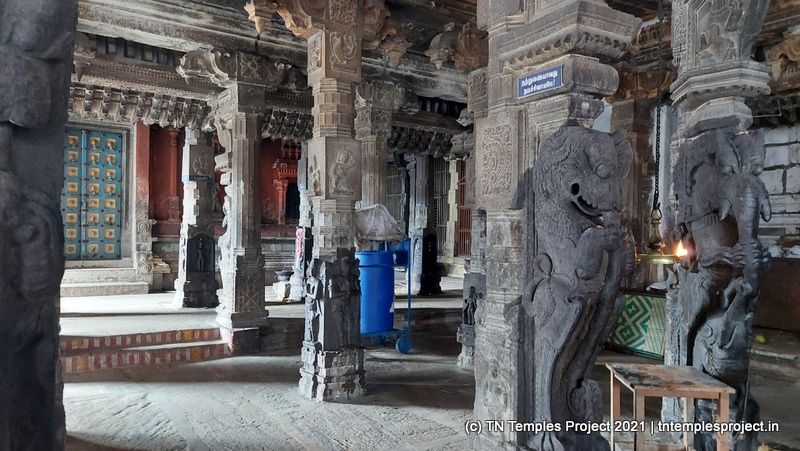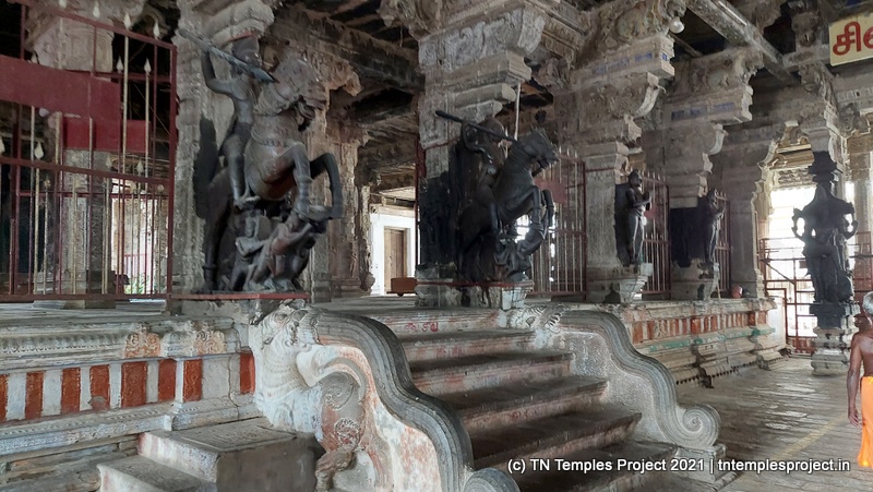 தெற்கிலிருந்து நுழைந்ததும், முதல் அமைப்பு ஒரு பெரிய மண்டபமாகும், இதில் பல்வேறு குதிரைகள், அந்தக் காலக் காவலர்கள் போன்ற பல சுவாரஸ்யமான சிற்பங்கள் உள்ளன. குறிப்பாக, இந்த வேலைப்பாடுகளின் விவரம் மற்றும் நேர்த்தியால் ஒருவர் வியப்படைகிறார், இது அக்கால சிற்பிகள் மற்றும் ஸ்தபதிகளின் நீடித்த திறமைக்கு சான்றாகும். இடதுபுறத்தில் மாணிக்கவாசகருக்கு ஒரு சன்னதி அமைந்துள்ள ஒரு மண்டபம் உள்ளது, இது சற்று உயரத்தில் உள்ளது.