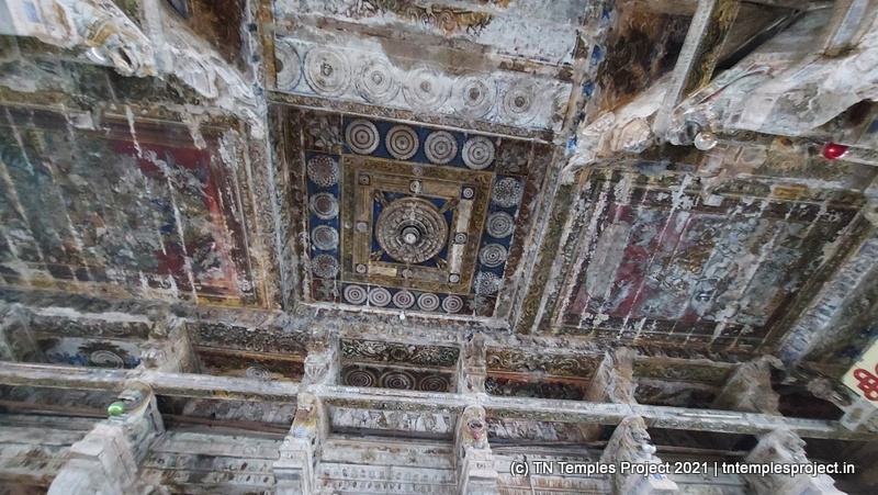 பிரகாரத்தின் மேற்குப் பகுதியில் உள்ள மண்டபத்தில், கூரையில் ஒரு ராசி மண்டலம் உள்ளது. இதிலிருந்து தொங்கும் 17 வெவ்வேறு சங்கிலி இணைப்புகள் உள்ளன, அங்கு தனிப்பட்ட வளையங்கள் நகரக்கூடியவை. ஆனால் அதிர்ச்சியூட்டும் பகுதி என்னவென்றால், இவை அனைத்தும் முற்றிலும் கல்லால் ஆனவை.