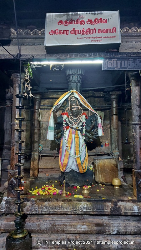இந்தக் கோயிலில் 7 நிலை ராஜ கோபுரம் உள்ளது, ஆனால் பலி பீடம் அல்லது துவஜஸ்தம்பம் இல்லை. மேலும், சிவன் இங்கு அனைத்தையும் உள்ளடக்கியிருப்பதால், இங்கு நந்தி அல்லது சண்டிகேஸ்வரர் அல்லது தட்சிணாமூர்த்தி கூட இல்லை (சிவனே குருவாகவும் தெற்கு நோக்கியும் இருப்பதால்).