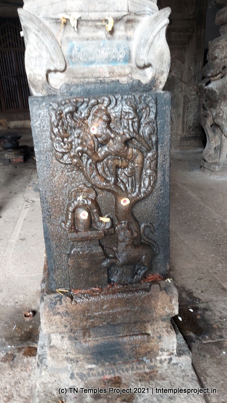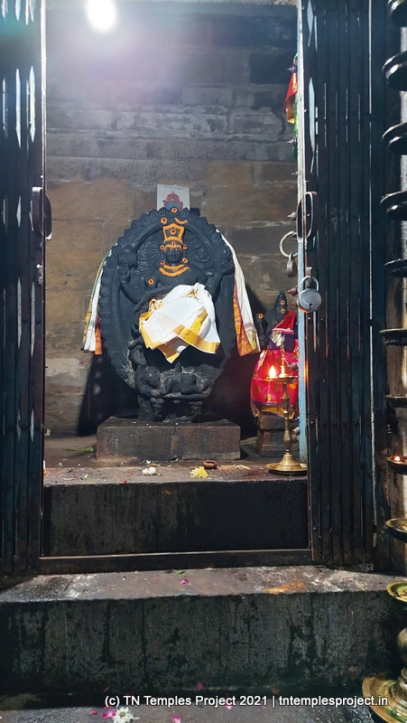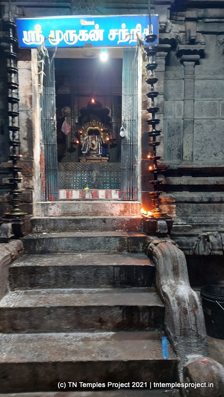 நேராக முன்னால் கர்ப்பக்கிரகம் உள்ளது, அதைச் சுற்றி அம்மன், முருகன் மற்றும் பிற தெய்வங்களுக்கான சன்னதிகள் அமைந்துள்ள உள் பிரகாரம், அதே போல் கல்லில் ஒரு குருந்தை மரம் உள்ளது.