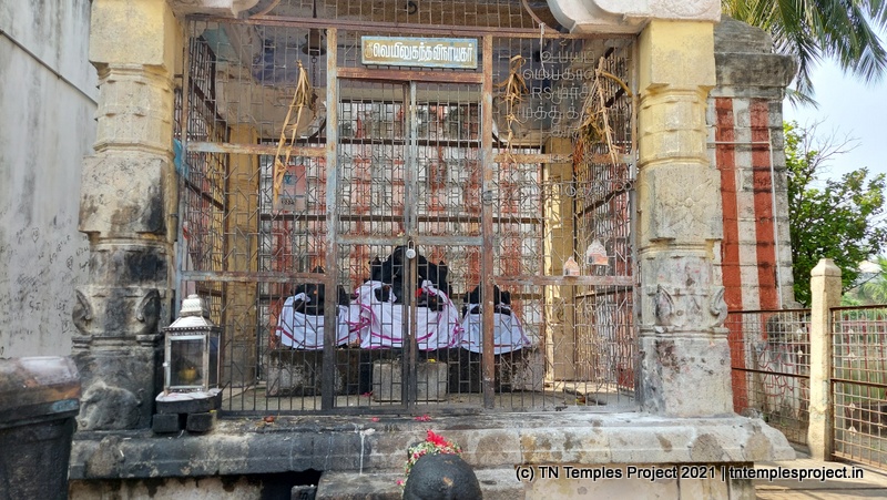 கர்ப்பக்கிரகத்தில் உள்ள ஆவுடைக்குப் பின்னால், மூன்று விளக்குகள் உள்ளன – வெள்ளை நிறமானது சூரியனாகவும், சிவப்பு நிறமானது அக்னியாகவும், பச்சை நிறமானது சந்திரனாகவும் கருதப்படுகிறது. இங்கு சிவன் உருவமற்றவராக இருப்பதால், மூன்று விளக்குகளும் சிவனின் மூன்று கண்களாகக் கருதப்படுகின்றன.