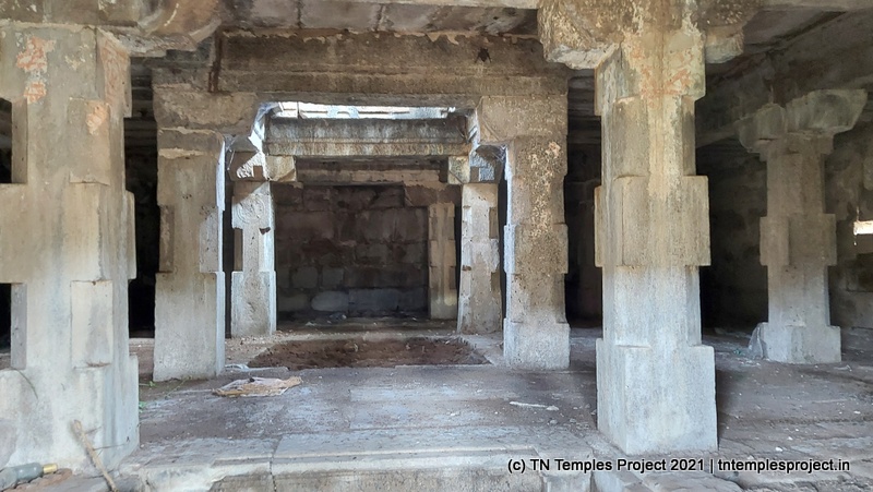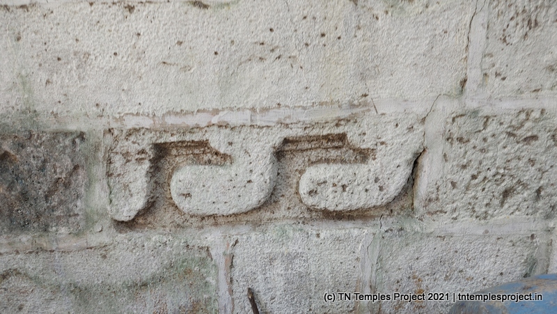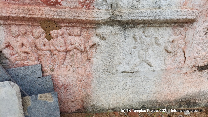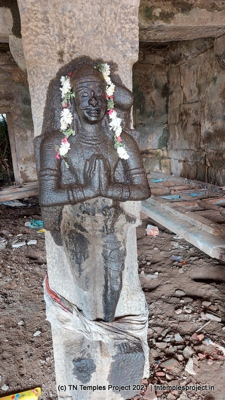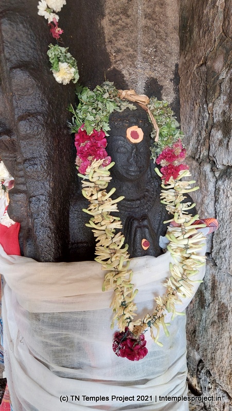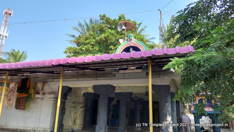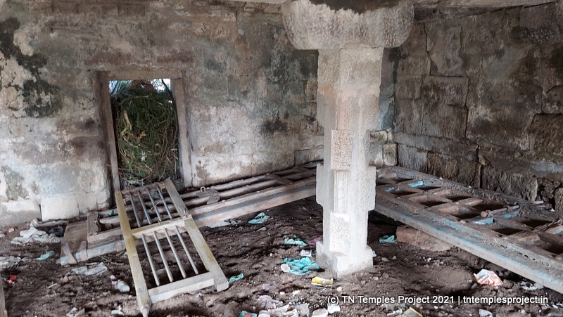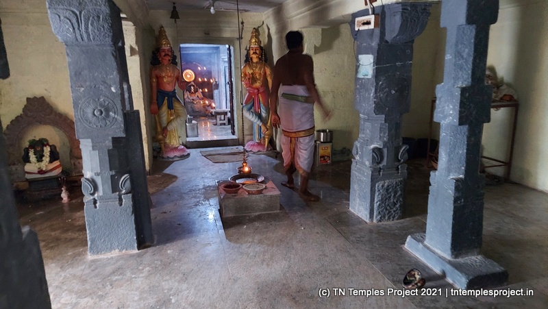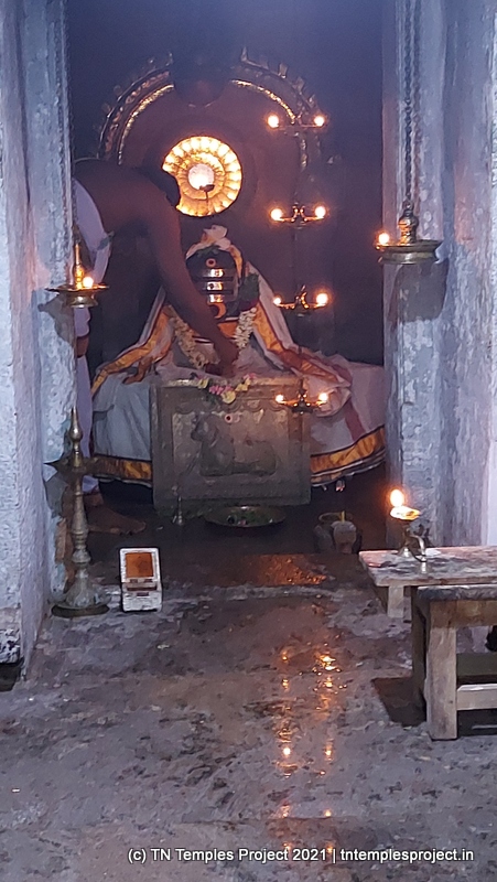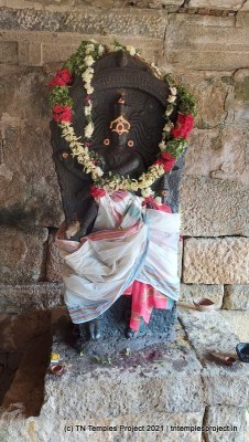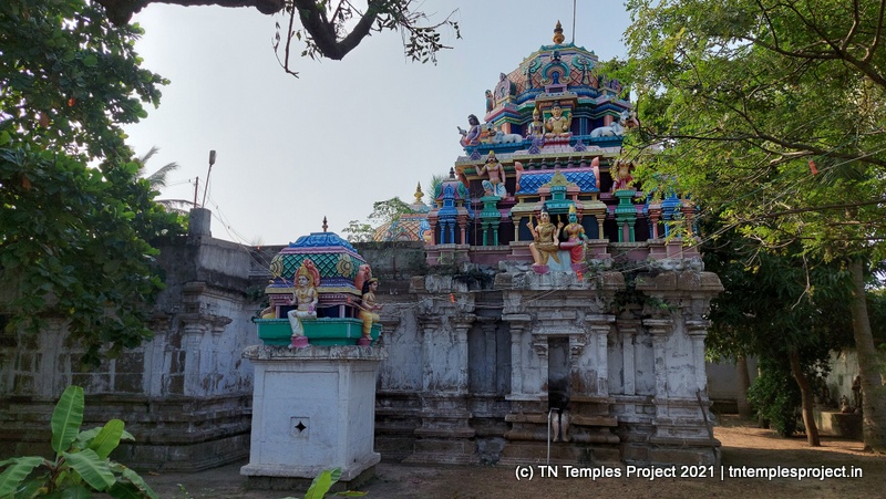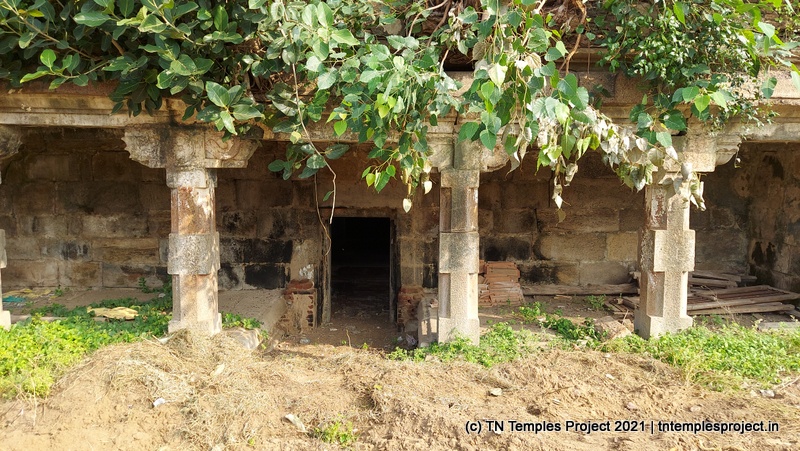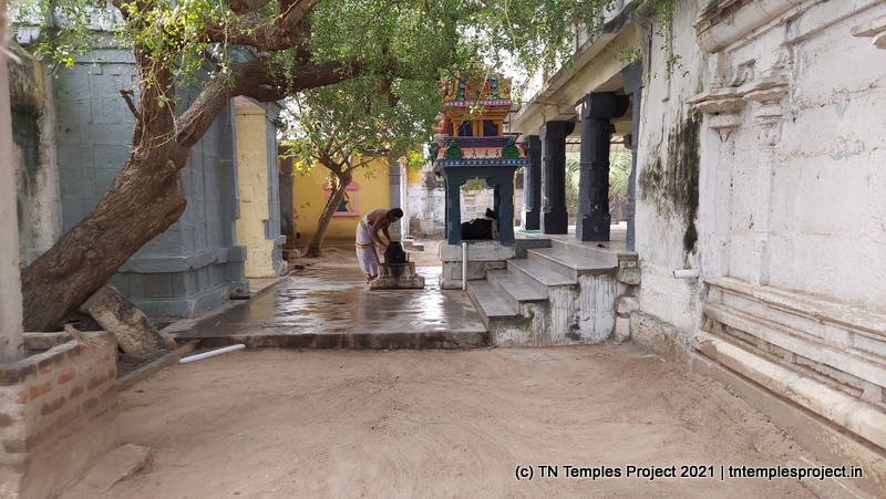 In the koshtam, there are shrines only for Dakshinamurti and Lingodhbhavar. The entire northern part is empty. In the prakaram, there are shrines for Vinayakar, Murugan with his consorts Valli and Deivanai, Chandikeswarar, Bhairavar, Suryan and Chandran. There is no separate Navagraham shrine here. In the prakaram, one can find a number of damaged vigrahams as well.