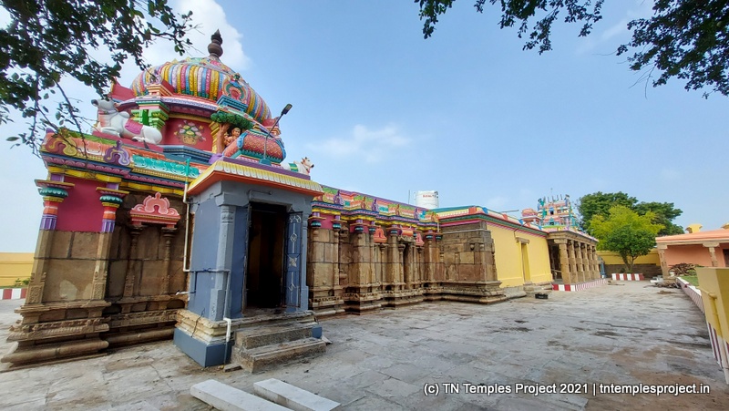 While the original temple is undated, it is said to have gone through several a major around the 14th century, during the Pandya rule, and several renovations thereafter. The Pandya influence on architecture is very evident. Several aspects of the temple today – including the raja gopuram, and shrines of Murugan, Chandikeswarar, Bhairavar, Suryan and Chandran – were fully rebuilt a the time of kumbhabhishekam in 1990. At the time of our visit in December 2021, was being prepared for another kumbhabhishekam in 2022.