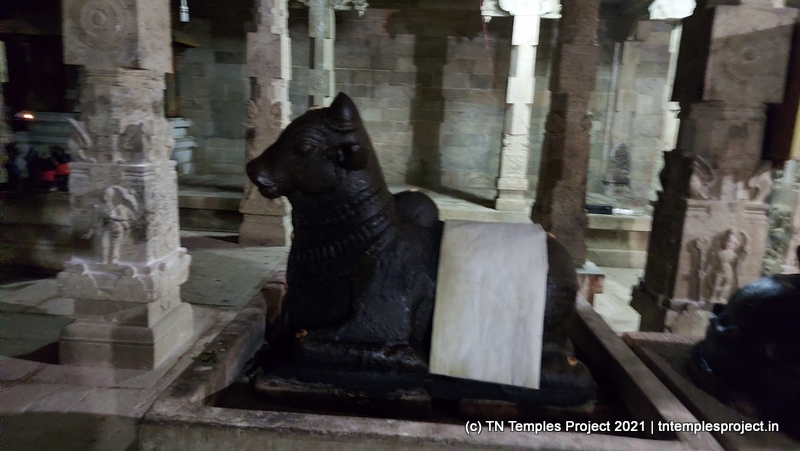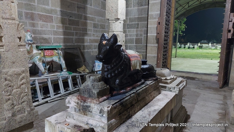 பாண்டியர்களின் கோயில்களில் உள்ளபடி, அம்மனுக்கு தனி நந்தி உள்ளது. சிவன் மற்றும் பார்வதி இருவரும் கிழக்கு நோக்கியிருப்பதால், இக்கோயிலில் அவர்களது கல்யாண கோலம் உள்ளது.