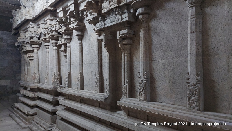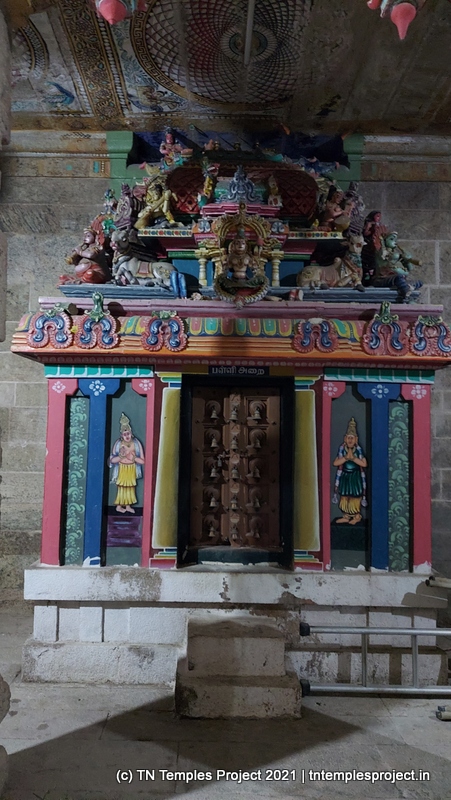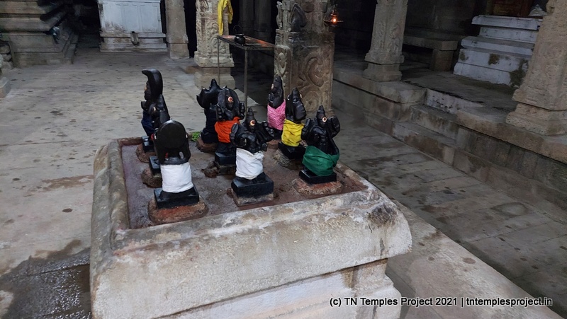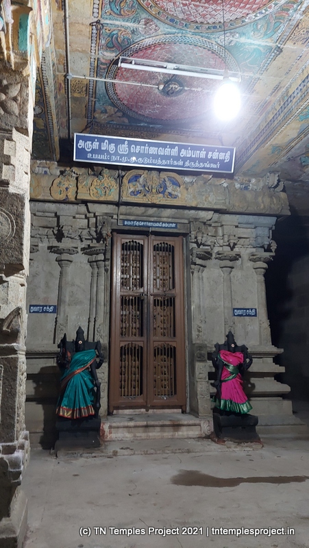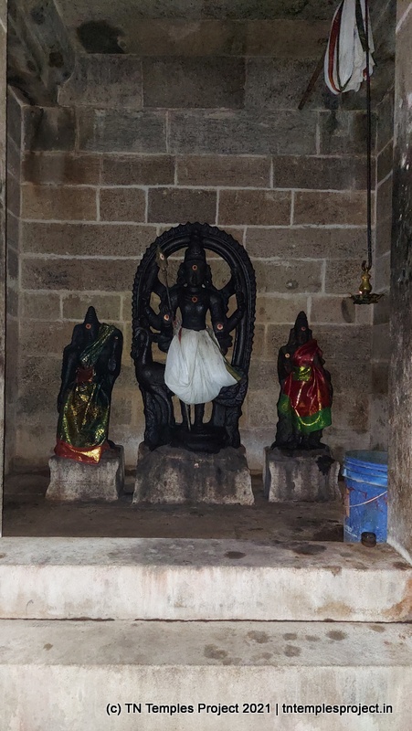 கோஷ்டத்தில் விநாயகர், தட்சிணாமூர்த்தி, லிங்கோத்பவர், பிரம்மா மற்றும் துர்க்கை சன்னதிகள் உள்ளன. கர்ப்பகிரஹத்தைச் சுற்றிலும் உள்ள பிரகாரத்தில் விநாயகர், முருகன், துணைவியார் வள்ளி, தெய்வானை, கஜலட்சுமி, சண்டிகேஸ்வரர், பைரவர் ஆகியோருக்கு தனித்தனி சன்னதிகள் உள்ளன. தனி நவக்கிரகம் சன்னதியும், தேவாரம் நால்வருக்கும் (அப்பர், சம்பந்தர், சுந்தரர் மற்றும் மாணிக்கவாசகர்) சன்னதி உள்ளது. அம்மன் கோவில் வடக்கே சிவன் கோவிலுக்கு அருகில் உள்ளது, மேலும் வெளியில் இருந்து நேரடியாகவும் (அதன் சொந்த 3-நிலை கோபுரம் வழியாக) மற்றும் சிவன் கோவிலில் இருந்து ஒரு வழியாகவும் அணுகலாம்.