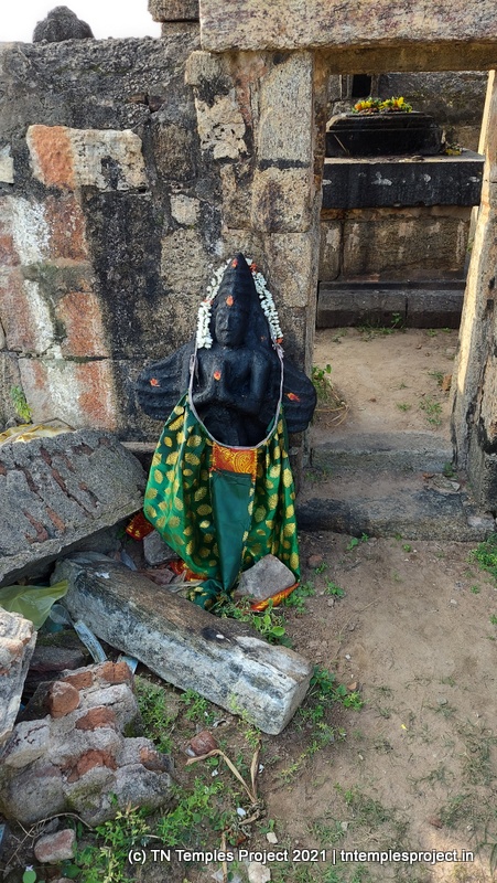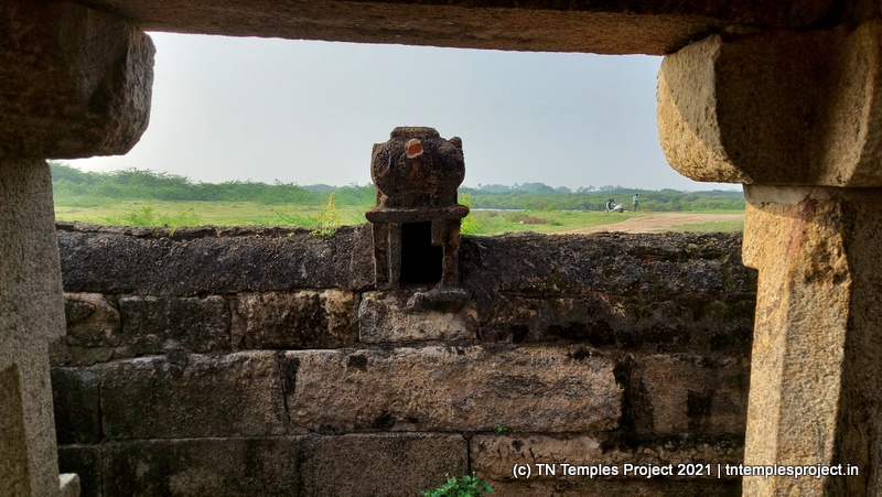 This temple has some subordinate shrines as well, including an east-facing Vinayakar shrine (complete with its own bali peetham and mooshikam), and a west-facing shrine that houses what might be a flat Lingam, or a bali peetham.