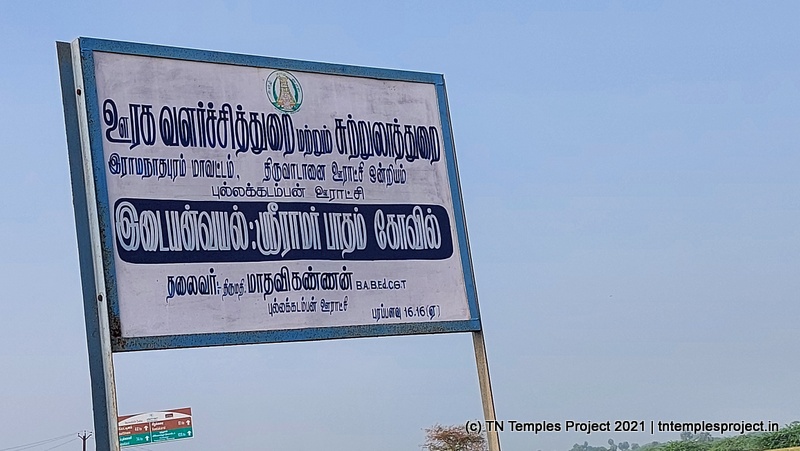 This temple is located just off the main road from Theerthandathanam towards Thondi, on the east (ie, the side of the beach), and is signposted on the road (but only from this direction). This place is connected to the Ramayanam.