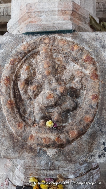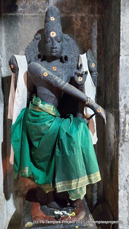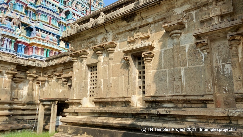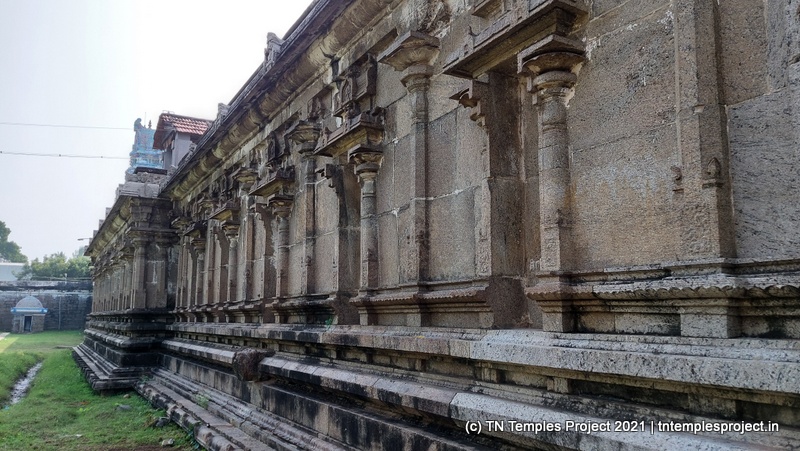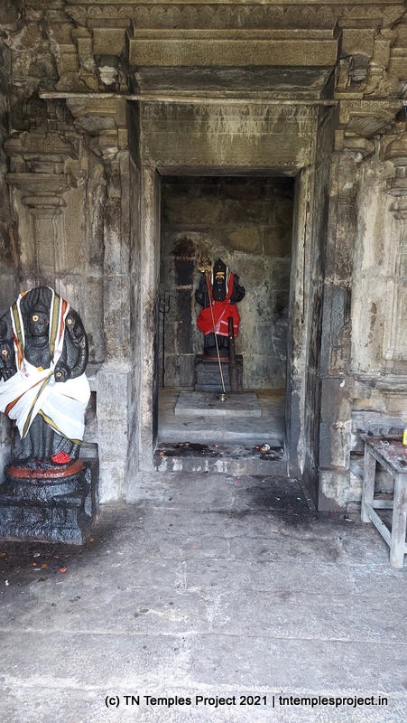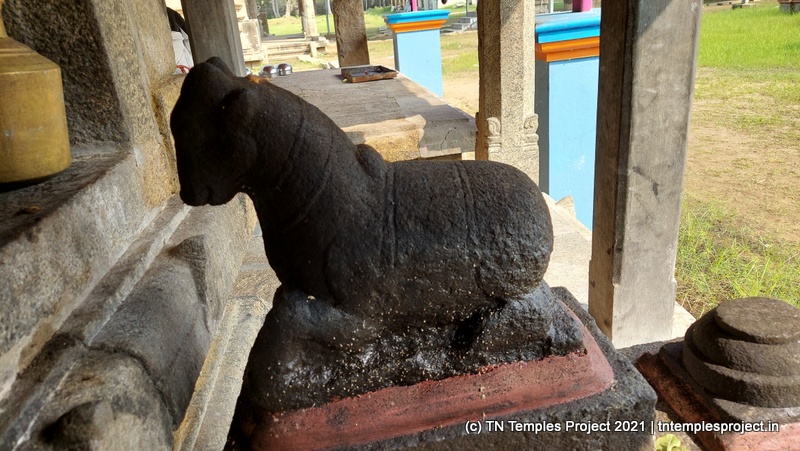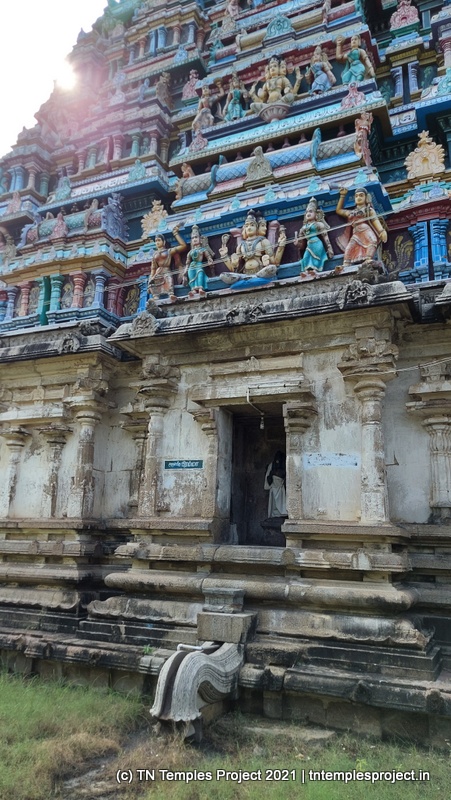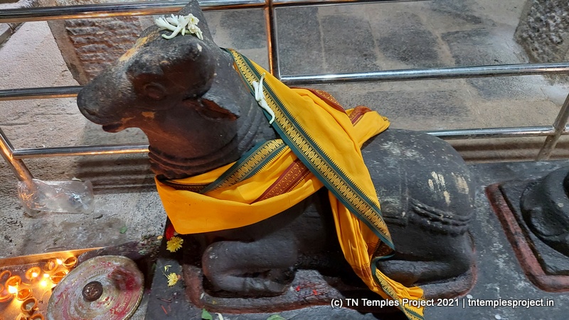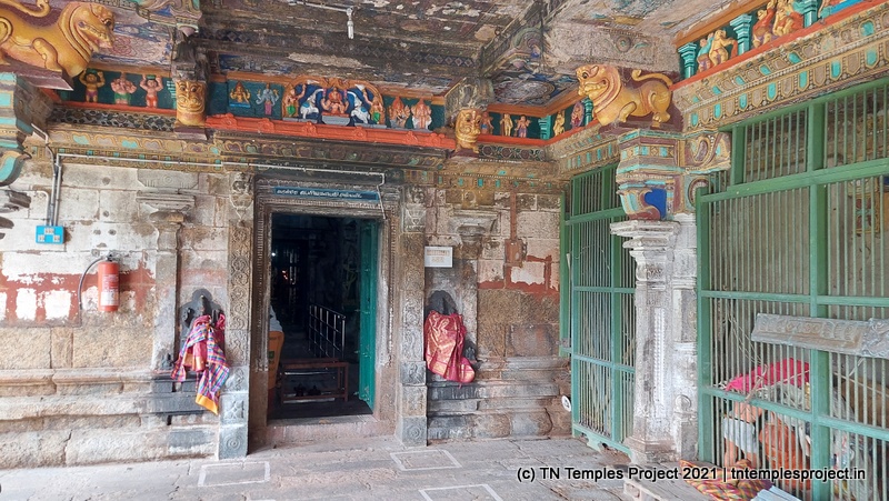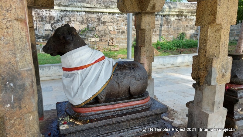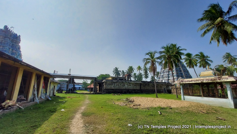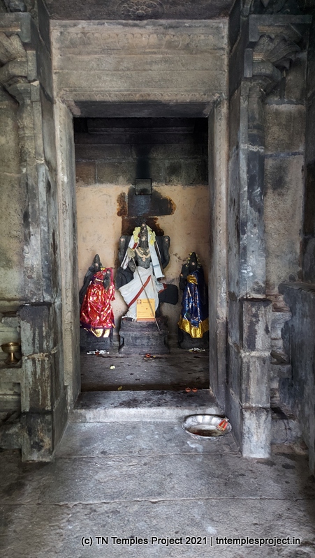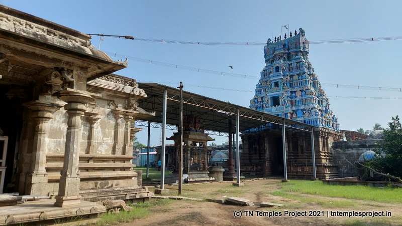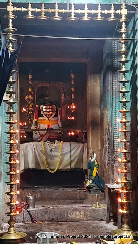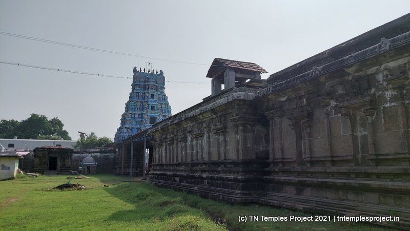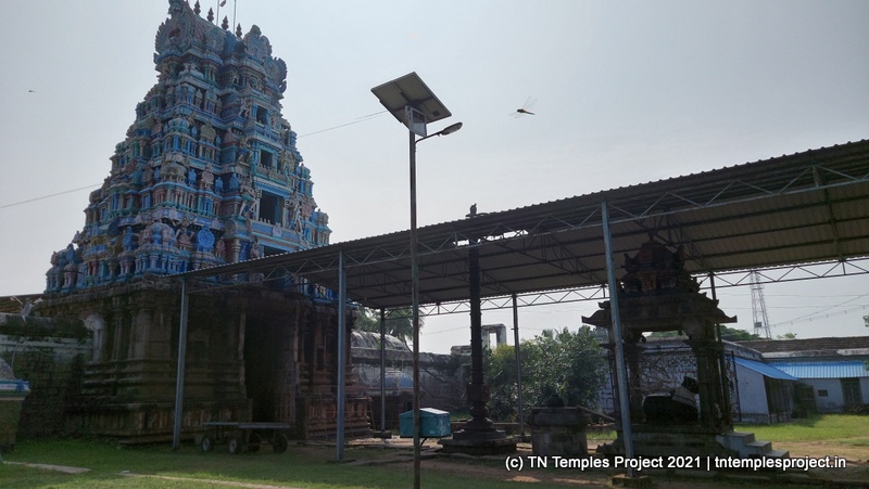 கோவிலின் நுழைவாயிலில் உள்ள ராஜகோபுரம் வல்லப கணபதி (உச்சிஷ்ட கணபதியாக சித்தரிக்கப்பட்டுள்ளது) மற்றும் முருகன் ஆகியோரால் சூழப்பட்டுள்ளது. உள்ளே துவஜஸ்தம்பம் மற்றும் பலி பீடம் உள்ளது, இது ஒரு செதுக்கப்பட்ட வட்ட அடித்தளத்தில் உள்ளது. தொடர்ந்து வரும் பிரதோஷ நந்தியும் மிகப் பெரியது.