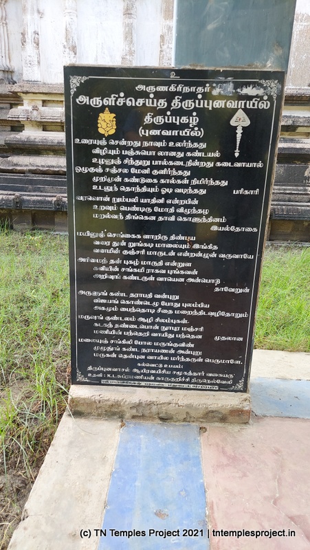 அருணகிரிநாதர் தனது திருப்புகழ் நூலில் இக்கோயிலில் உள்ள முருகனைப் பற்றி பாடியுள்ளார்.