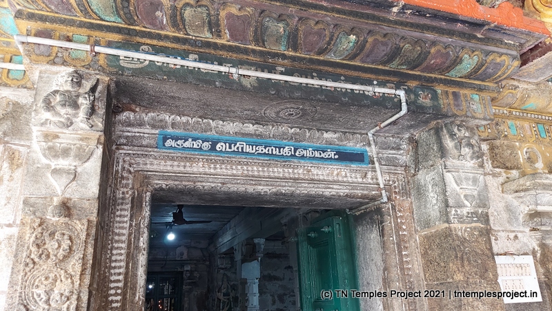 பெரியநாயகி அம்மன் சன்னதி, மூலவர் சன்னதியை எதிர்கொள்ளும்போது வலதுபுறம் தனி சன்னதி உள்ளது. மேலும், கோவிலின் வடகிழக்கு பகுதியில் குடைவரை காளி அரூபத்தில் (உருவமற்ற) சன்னதி உள்ளது, அவர் மிகவும் கடுமையானவர் (உக்ரம்) அவளை நேரடியாக பார்க்க முடியாது. அதற்கு பதிலாக ஒரு கண்ணாடி முன் வைக்கப்பட்டுள்ளது, அங்கிருந்து பக்தர்கள் சக்தியின் காட்சியைப் பெறலாம்.