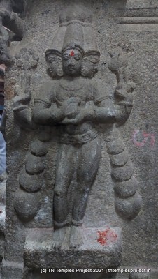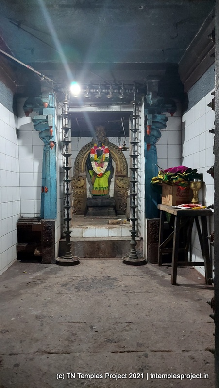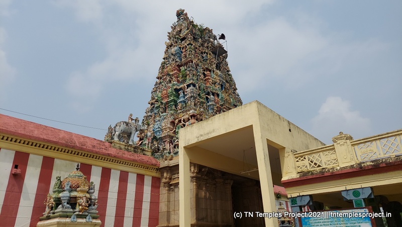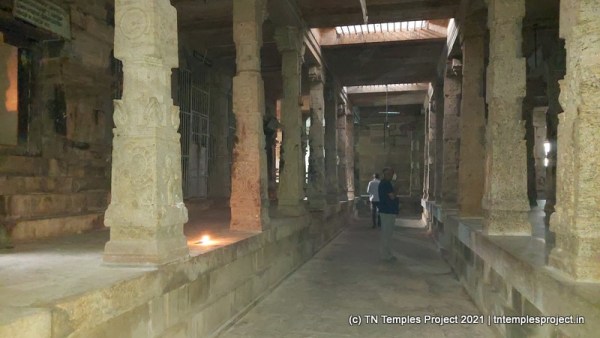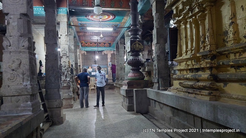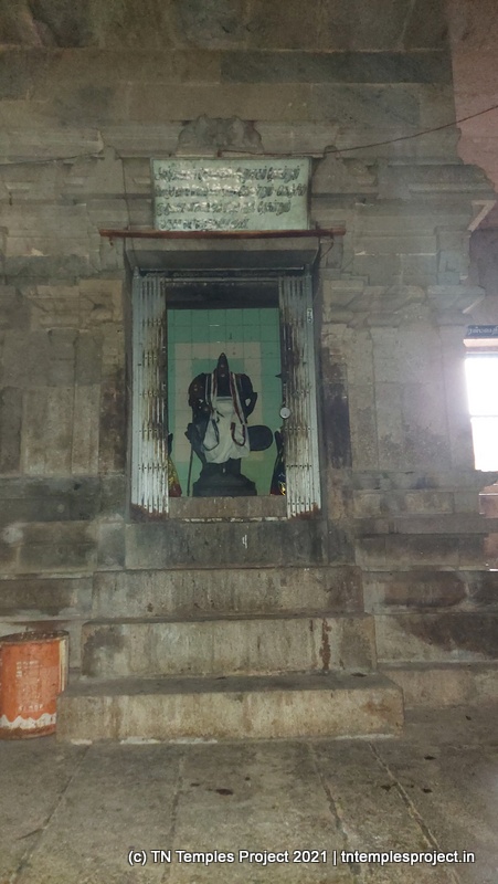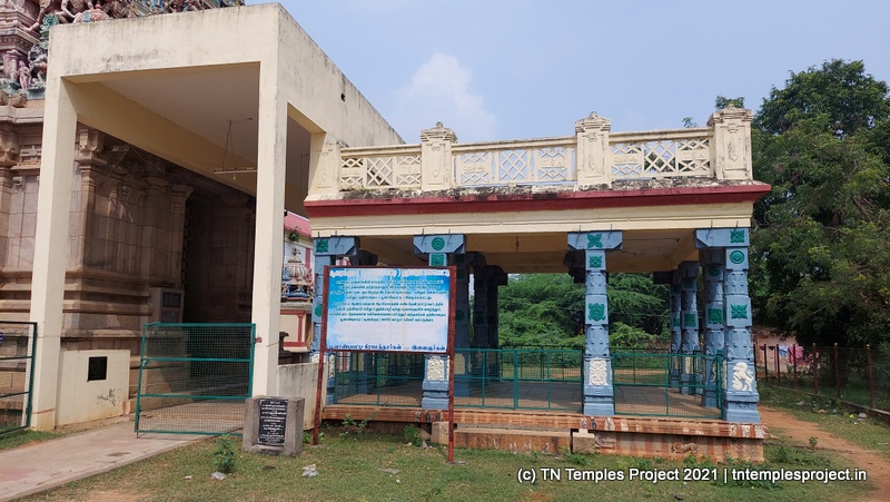 கிழக்கு நோக்கிய கோவிலின் உடனடி கிழக்கில் ஒரு குளம் உள்ளது, மேலும் தீர்த்தம் மற்றும் ராஜ கோபுரத்திற்கு இடையே ஒரு மண்டபம் உள்ளது. மகா மண்டபம் உயரத்தில் உள்ளது, மேலும் துவஜஸ்தம்பம், பலி பீடம் மற்றும் நந்தி ஆகியவை உள்ளன. இப்பகுதியில் உள்ள மற்ற சில கோயில்களில் உள்ள பாணியைப் போலவே, நந்தியின் பீடமும் நான்கு யாளிகளால் ஆதரிக்கப்படுகிறது, இது மிகவும் சுவாரஸ்யமானது மற்றும் அசாதாரணமானது.