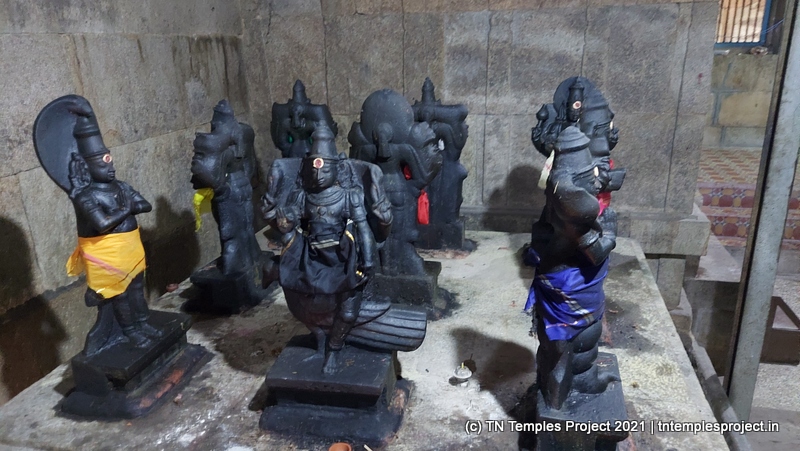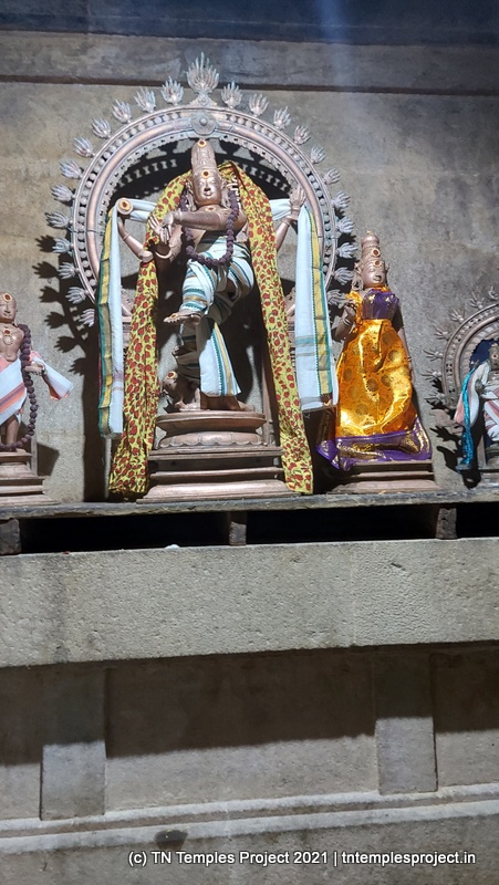 கோஷ்டத்தில் நர்த்தன விநாயகர், தட்சிணாமூர்த்தி, லிங்கோத்பவர், பிரம்மா மற்றும் துர்க்கை உள்ளனர். பிரகாரத்தில் 63 நாயன்மார்களும், அதைத் தொடர்ந்து விநாயகர், சிவன் சந்திரசேகரர் அம்மன், முருகன் அவரது துணைவிகளான வள்ளி, தெய்வானை, கஜலட்சுமி, சரஸ்வதி, நடராஜர் சபை, பைரவர், சூரியன், சந்திரன் ஆகியோர் உள்ளனர். தனி நவக்கிரகம் சன்னதி உள்ளது. கோவிலின் ஒப்பீட்டளவில் புதுமை இருந்தபோதிலும், கட்டிடக்கலை ஒலி மற்றும் பல்வேறு வானங்கள் மற்றும் புராணங்களின் காட்சிகளைக் குறிக்கிறது.